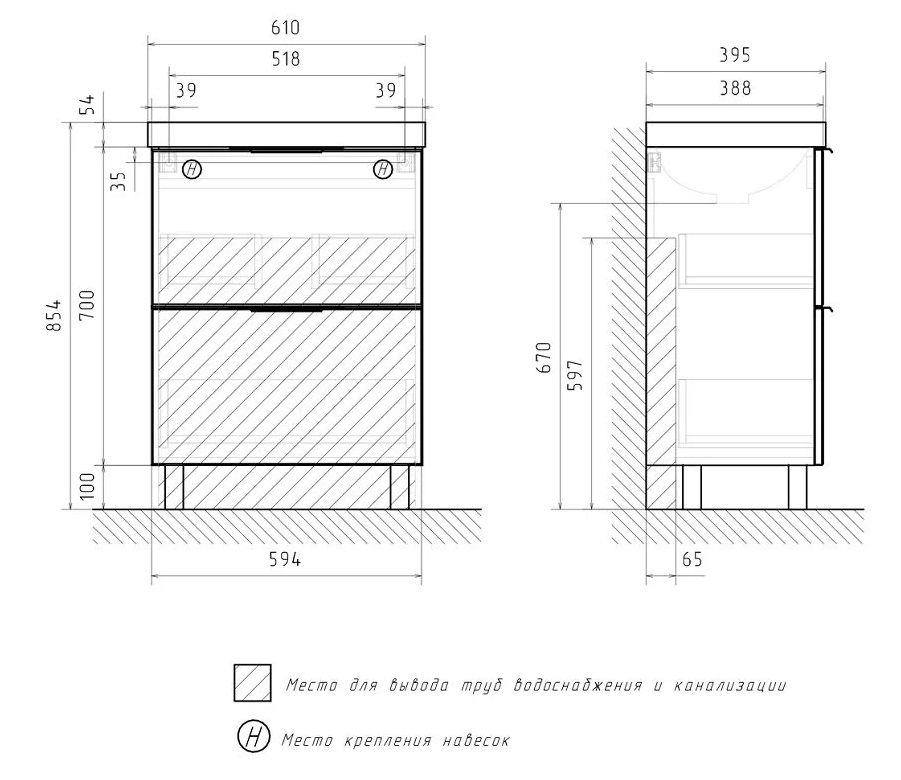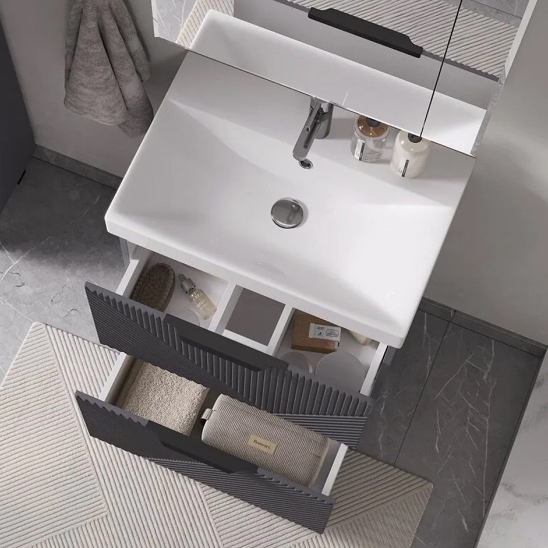 Тумба с раковиной Volna Geometry 60 напольный, 2 ящика, графит