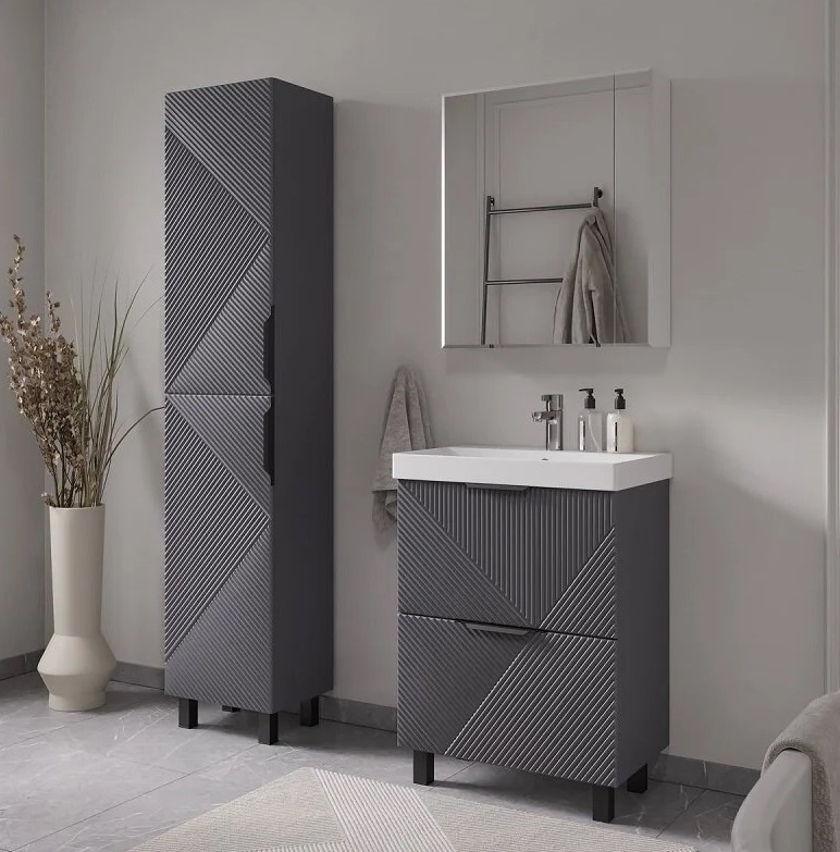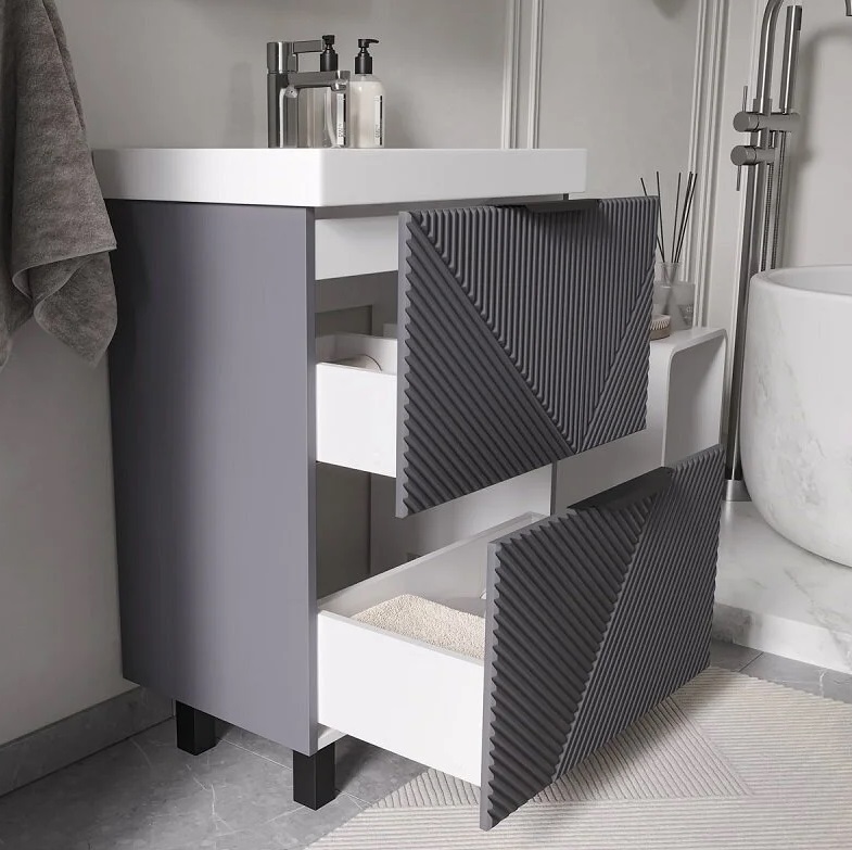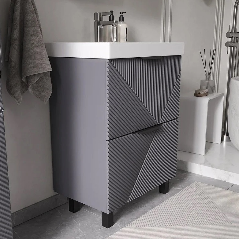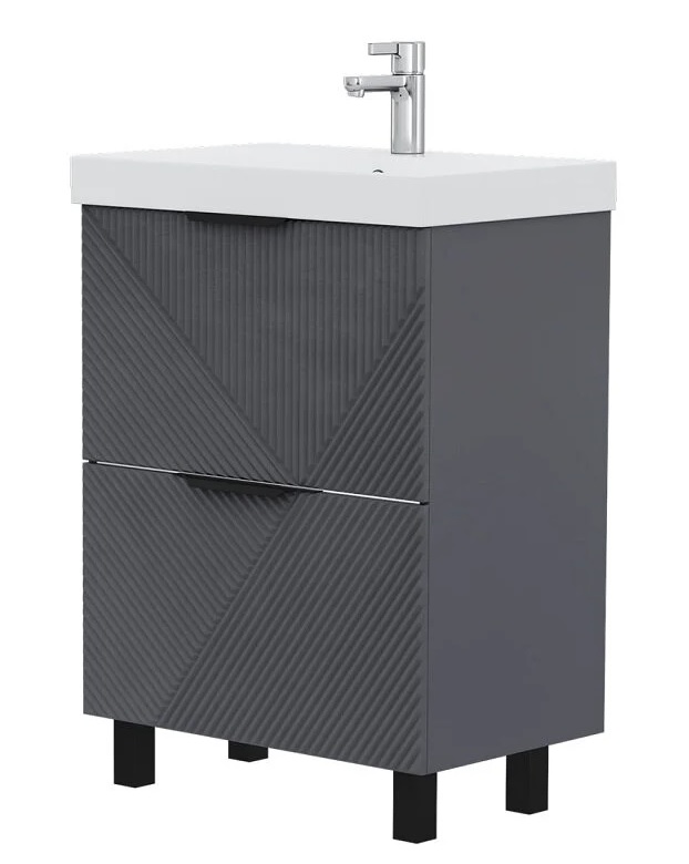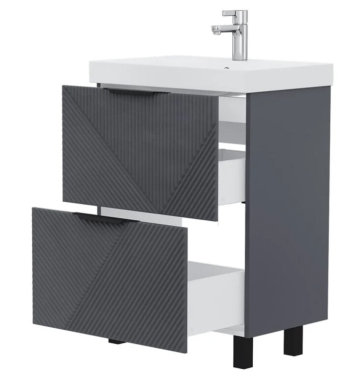 Тумба с раковиной Volna Geometry 60 напольный, 2 ящика, графит |