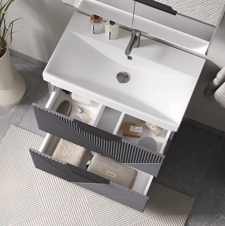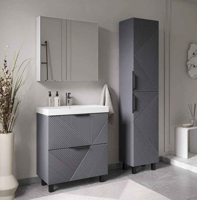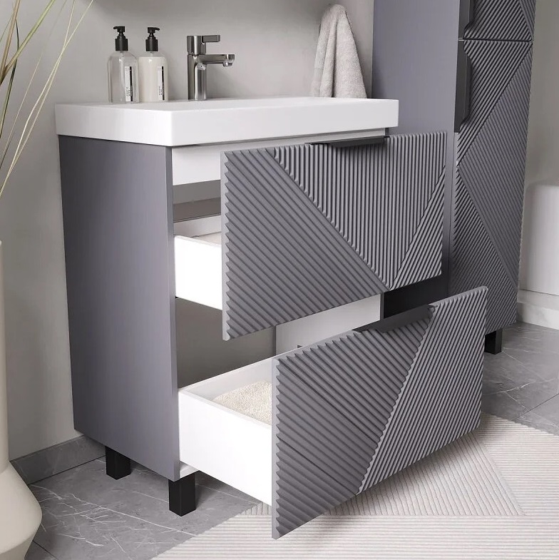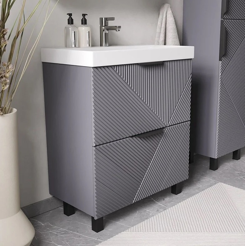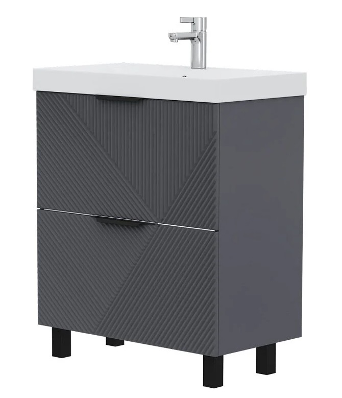Тумба с раковиной Volna Geometry 70 напольный, 2 ящика, графит |