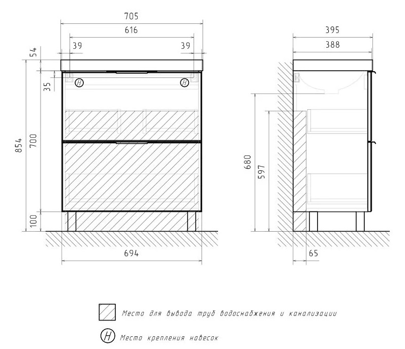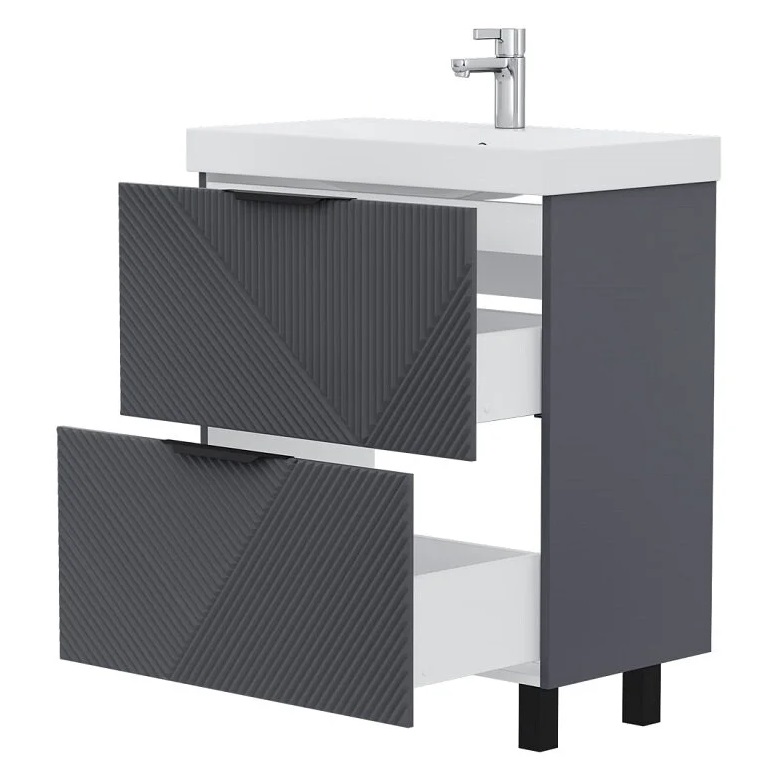 Тумба с раковиной Volna Geometry 70 напольный, 2 ящика, графит