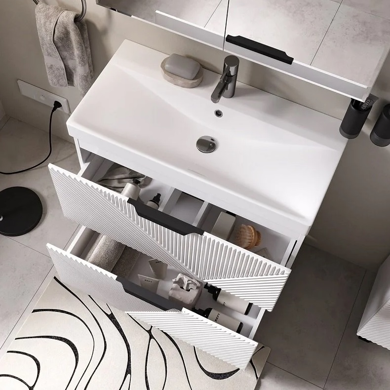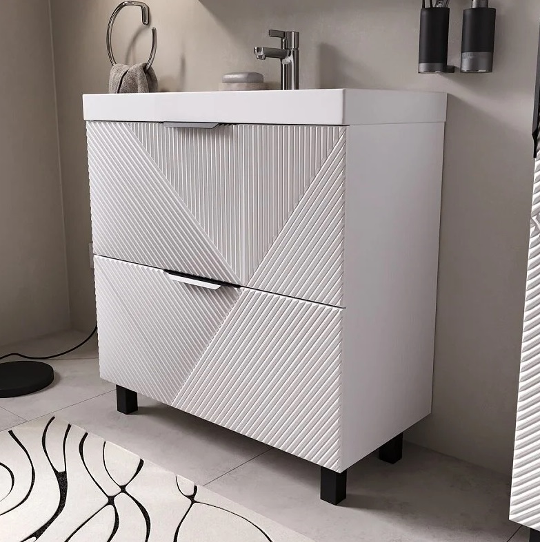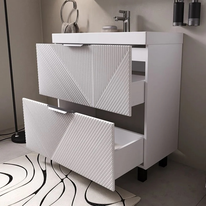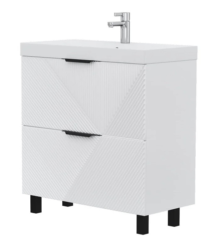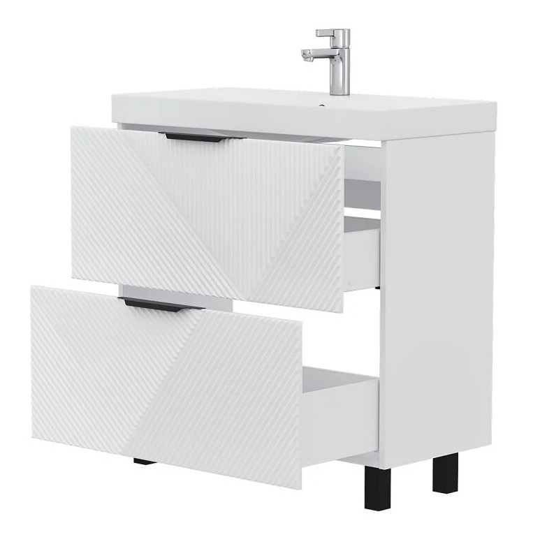 Тумба с раковиной Volna Geometry 80 напольный, 2 ящика, белый