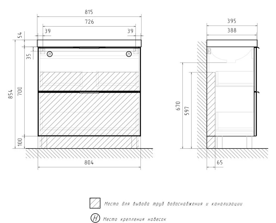 Тумба с раковиной Volna Geometry 80 напольный, 2 ящика, белый |