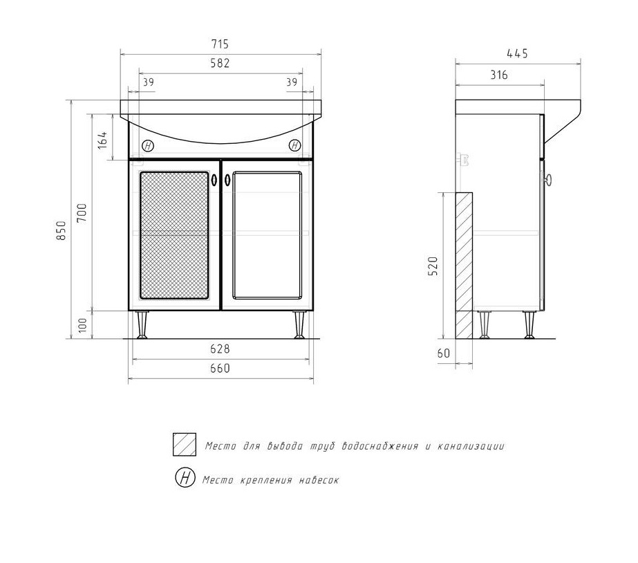 Тумба с раковиной Volna Milena 70 напольный, 2 дверцы, белый |