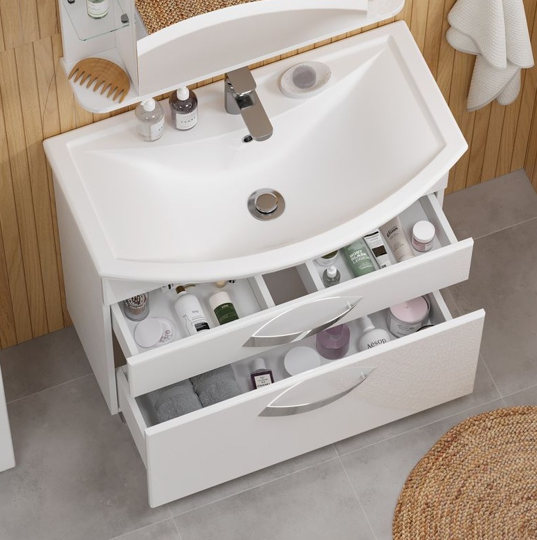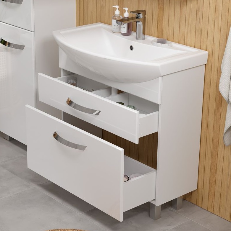Тумба с раковиной Volna Onda 70 напольный, 2 ящика, белый