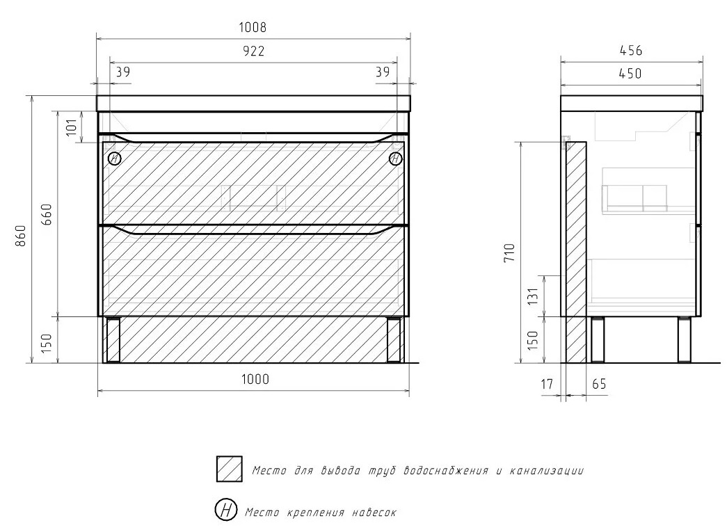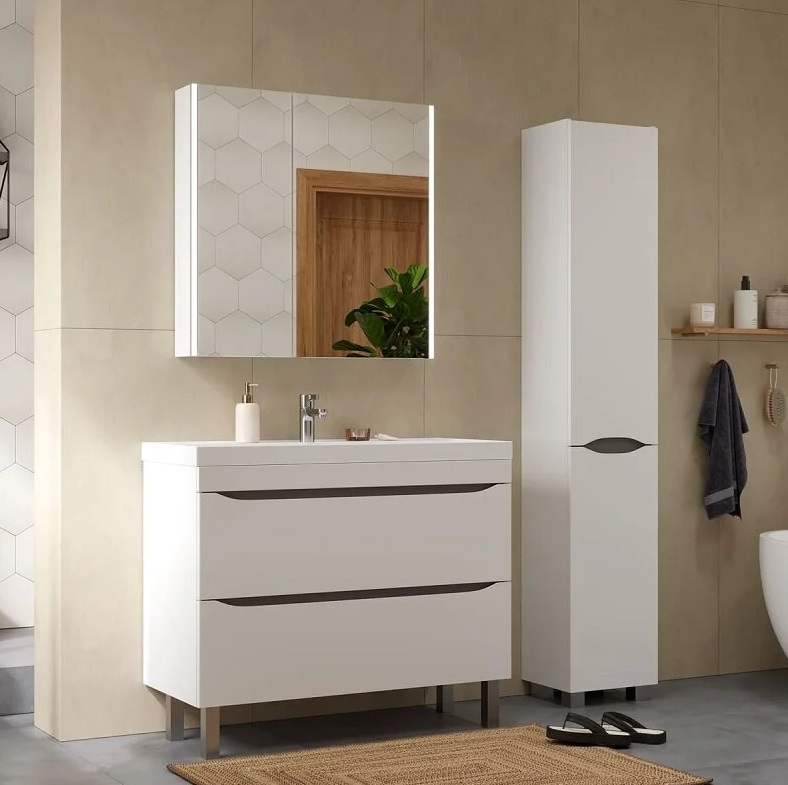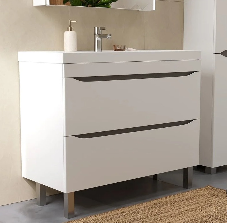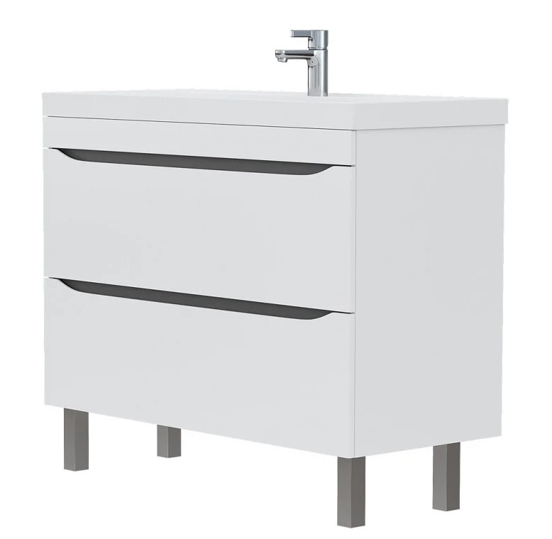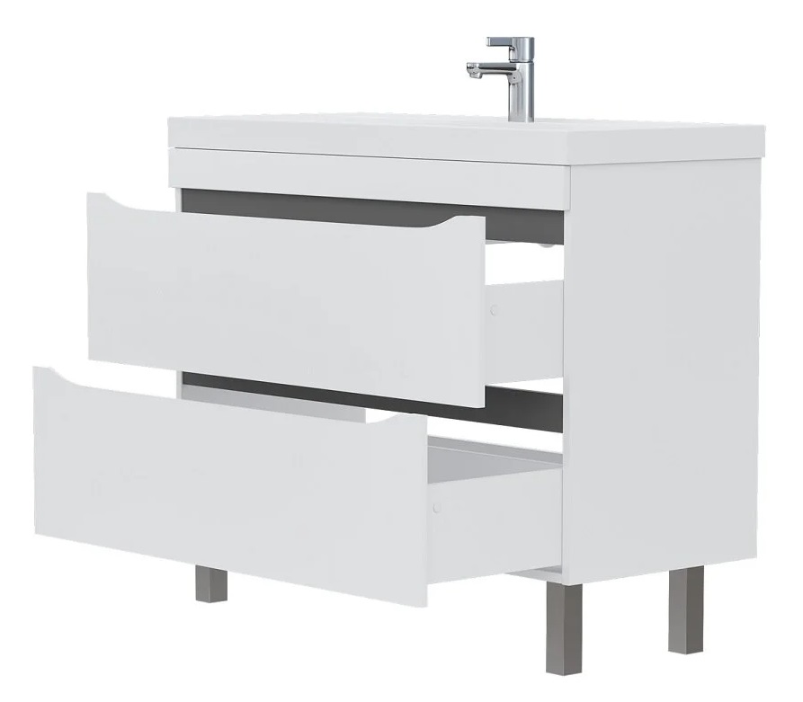 Тумба с раковиной Volna Prime 100 напольный, 2 ящика, белый