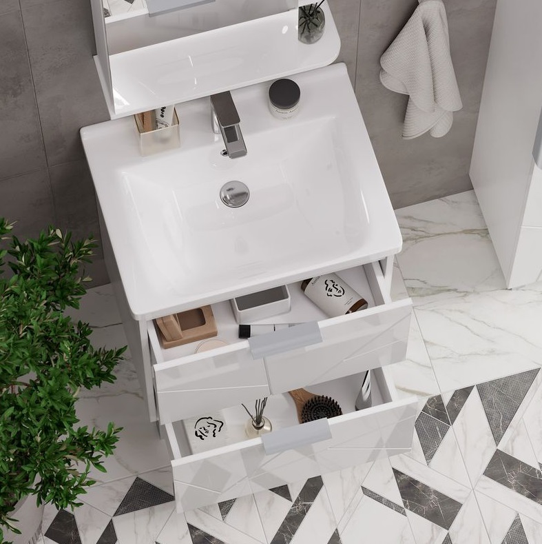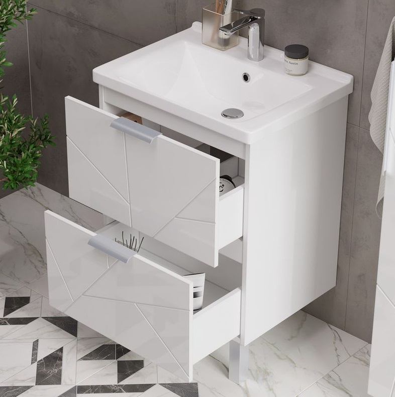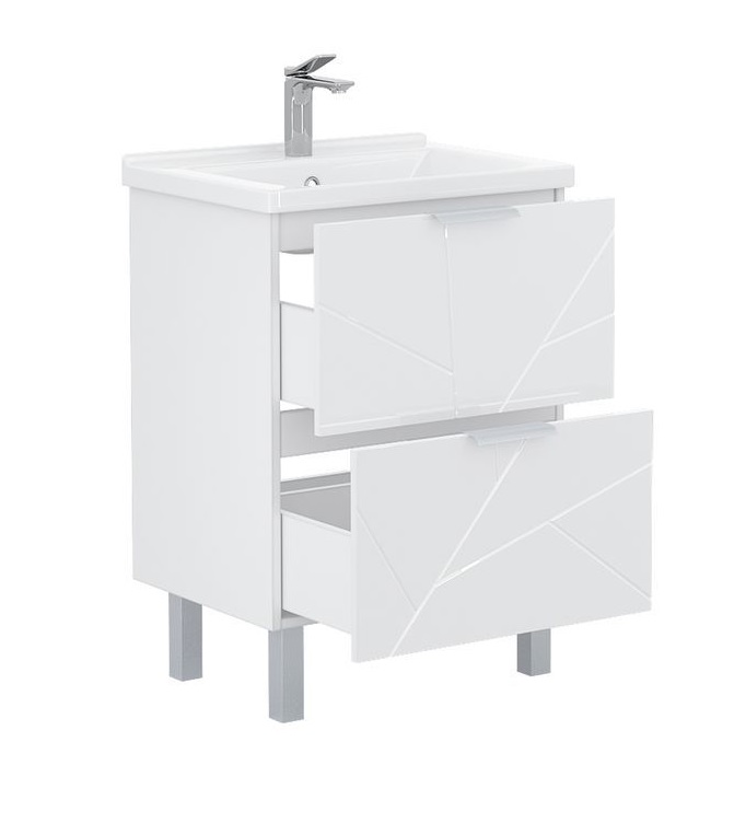 Тумба с раковиной Volna Twing 60 напольный, 2 ящика, белый