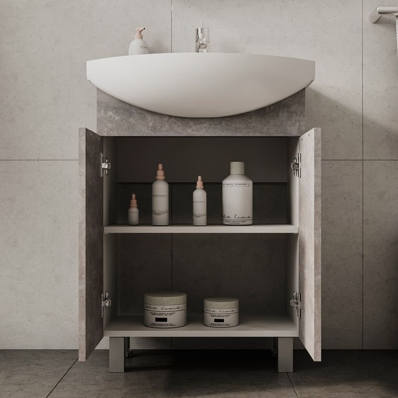 Тумба с раковиной Volna Vario 50 напольный, 2 дверцы, бетон |