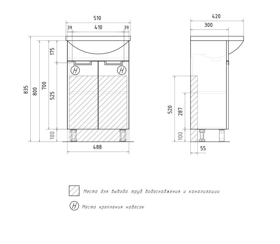 Тумба с раковиной Volna Vario 50 напольный, 2 дверцы, бетон