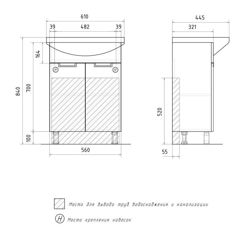 Тумба с раковиной Volna Vario 60 напольный, 2 дверцы, бетон |