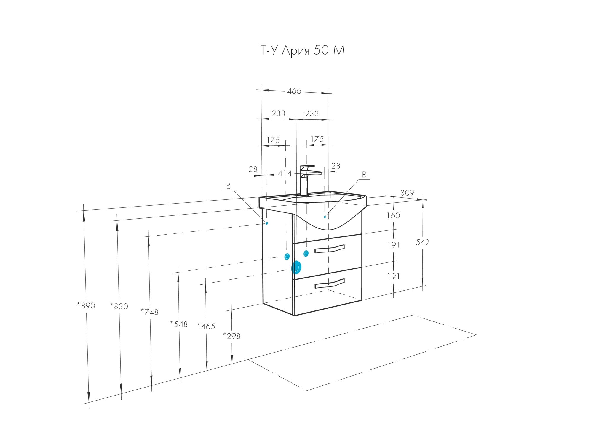 Тумба с раковиной Акватон Ария М 50 чёрный глянец 1A140001AA950 |