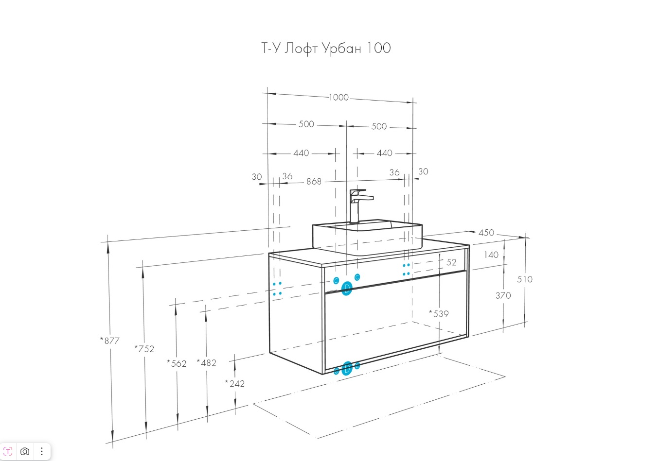 Тумба с раковиной Акватон Лофт Урбан 100 дуб орегон, серый графит, раковина Одри Round 1A247701LQX60 |