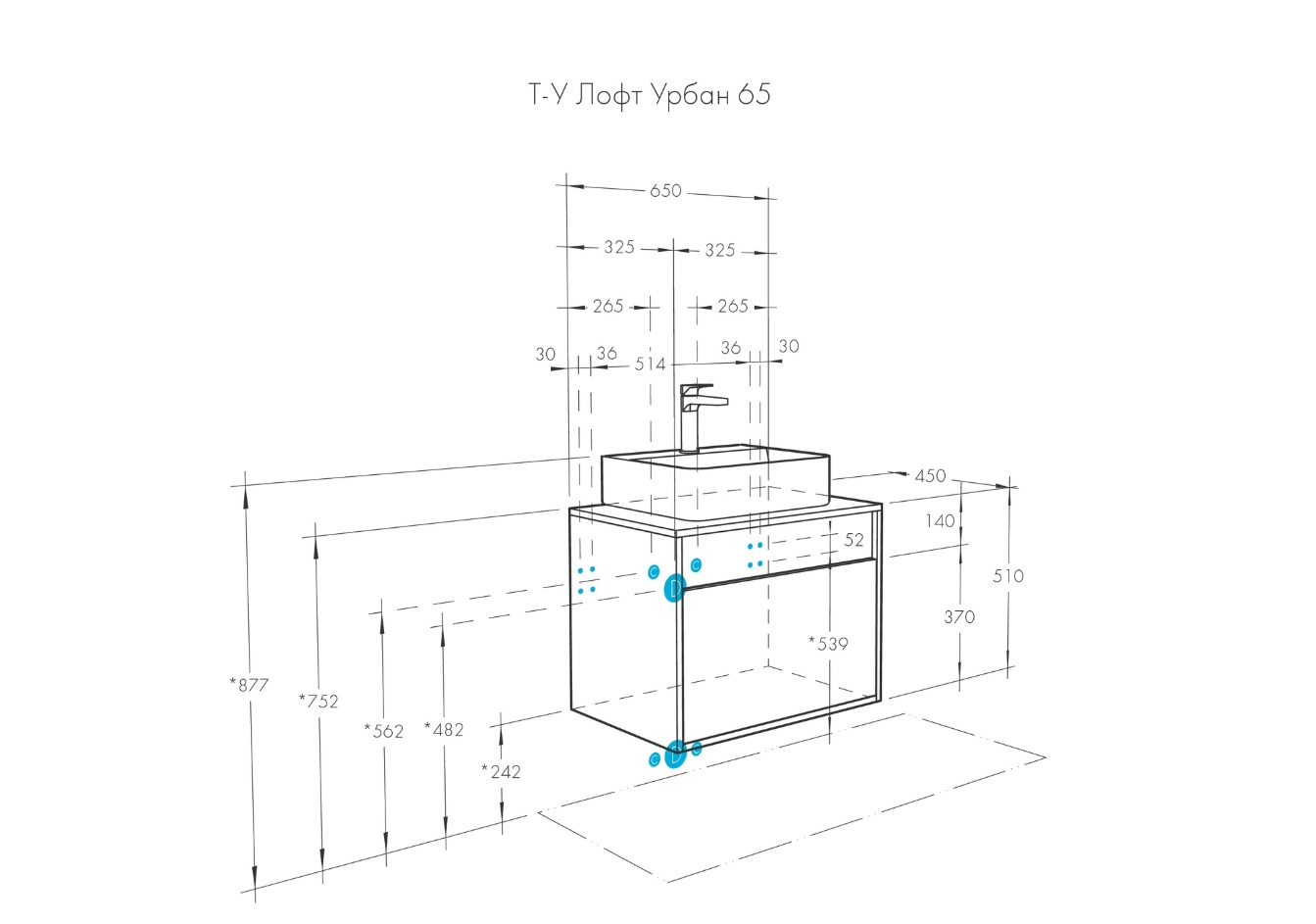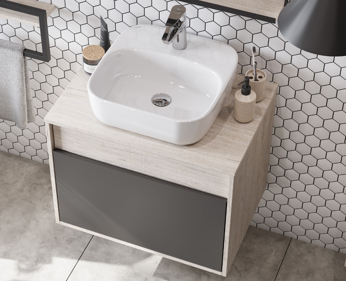 Тумба с раковиной Акватон Лофт Урбан 65 дуб орегон, серый графит, раковина Одри Soft 1A254001LQX60 |