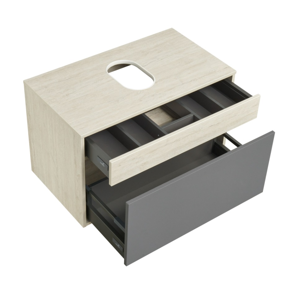 Модуль 65 коллекции Лофт Урбан функционально состоит из двух ящиков полного выдвижения. Верхний ящик тумбы комплектуется внутренней организацией пространства: в нем очень удобно хранить небольшие аксессуары и принадлежности. Вместительный нижний высокий ящик подойдет для более крупных предметов. Функция полного выдвижения ящиков и система открывания push-to-open делают использование тумбы особенно комфортным. Подвесной модуль может комплектоваться различными по размеру и дизайну металлическими черными опорами, высокими и низкими, которые крепятся непосредственно под модуль, кроме того, доступен вариант установки модуля и без опор. Корпус тумбы выполнен из влагостойкой ламинированной ДСП в цвете дуб орегон с текстурой натурального дерева, выгодно подчеркнутым фасадами из МДФ в пленке антрацит с эффектом soft touch.