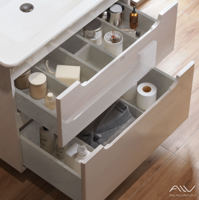 Тумба с раковиной Berta 75 белая воплощает новый уровень комфорта в ванной комнате. Подвесная конструкция с двумя секциями не загромождает пространство и помогает организовать вместительную зону хранения. Интегрированные в фасады ручки-зацепы поддерживают тренд на «невидимый» интерьер, а наличие доводчиков обеспечивает долговечную эксплуатацию выдвижных систем.