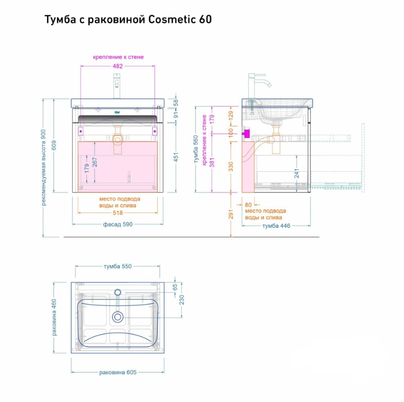 Тумба с раковиной Alavann Cosmetic 60 белая |