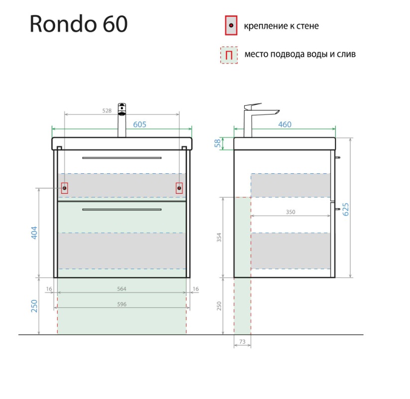 Тумба с раковиной Rondo 60 дуб - стильная подвесная модель станет центральным элементом вашего пространства. Изделие выполнено из прочного МДФ, покрытого ПВХ-пленкой в цвете «дуб». Этот оттенок привносит в интерьер тепло натурального дерева и гармонично сочетается с различными стилями оформления.