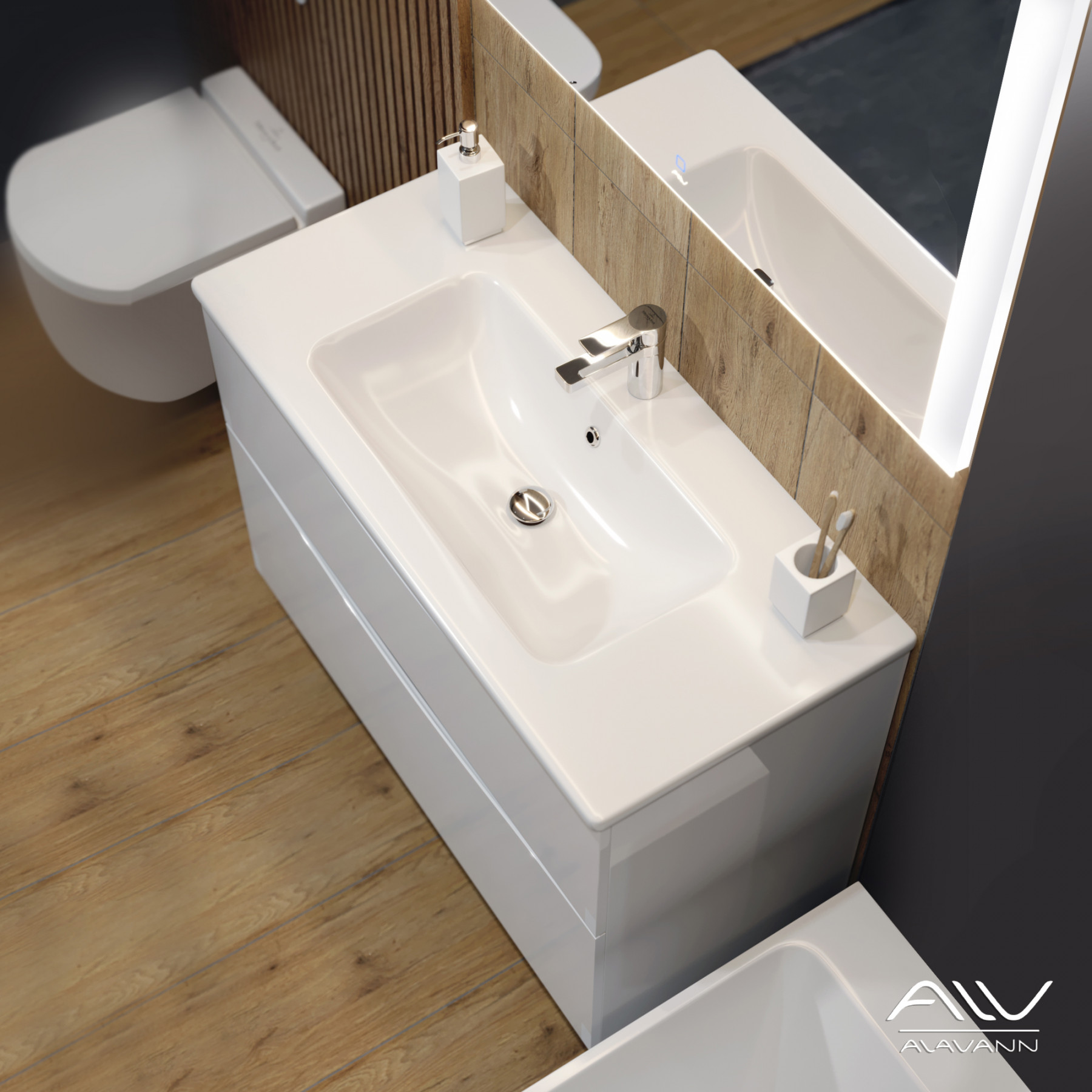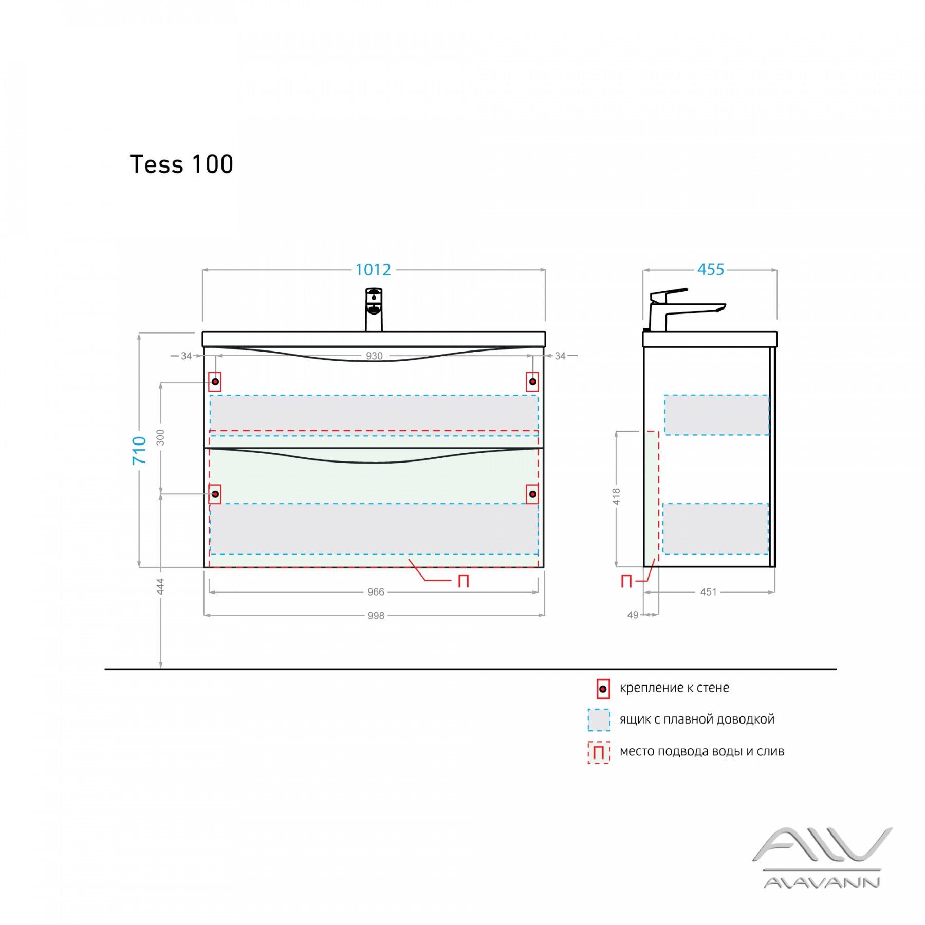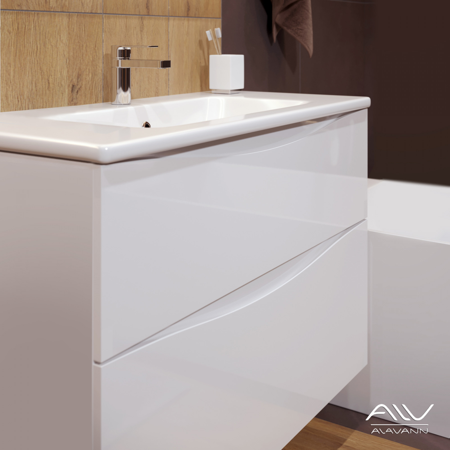 Современная подвесная тумба в ванную Тесс 100 является новинкой от дизайнеров компании Alavann. Интегрированные в фасад плавные линии ручек удачно гармонируют с четкими линями корпуса изделия.