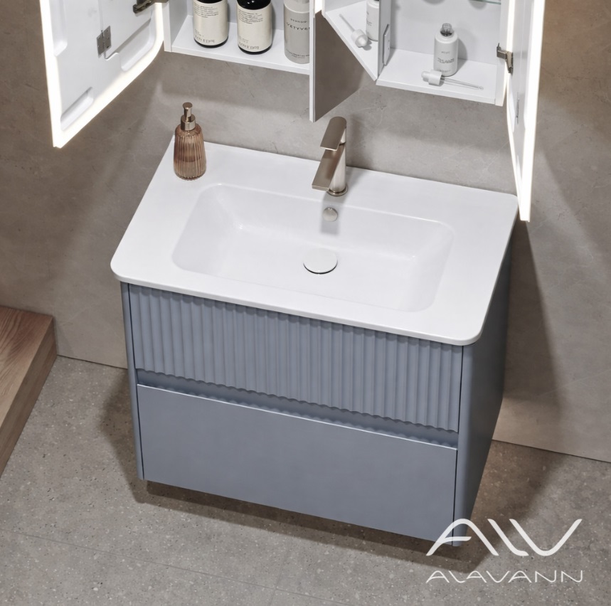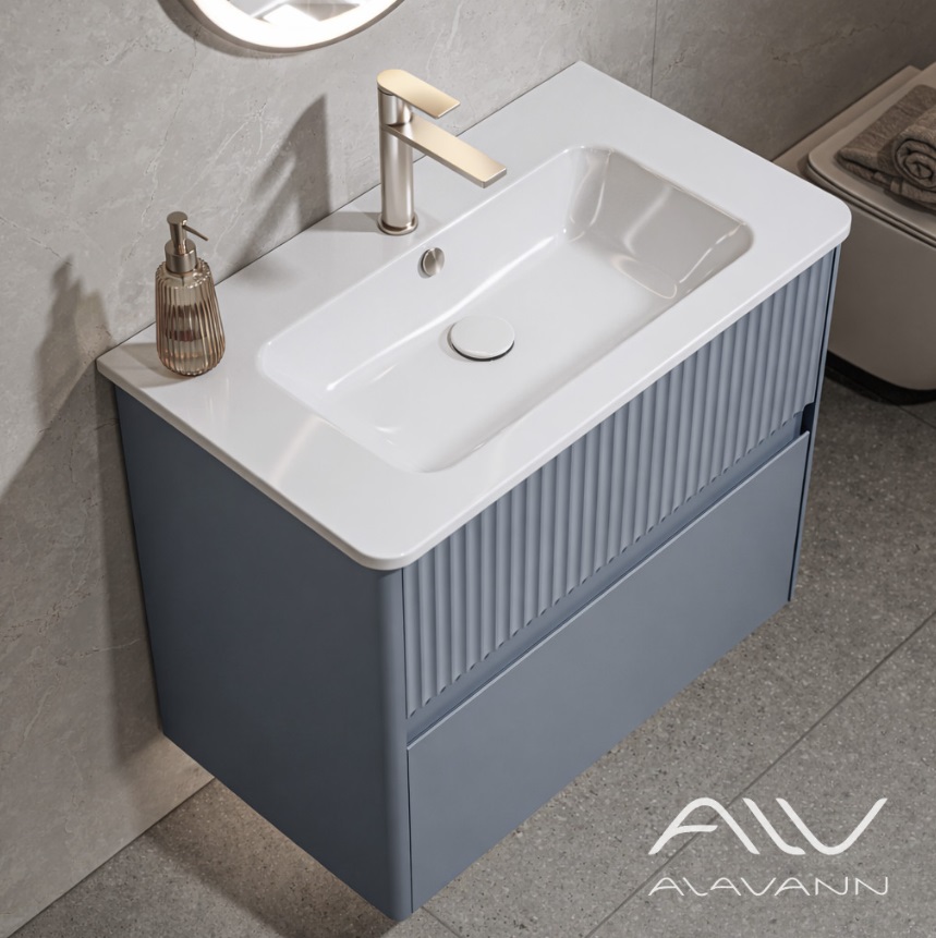 Тумба с раковиной Alavann Wave 80 голубой деним