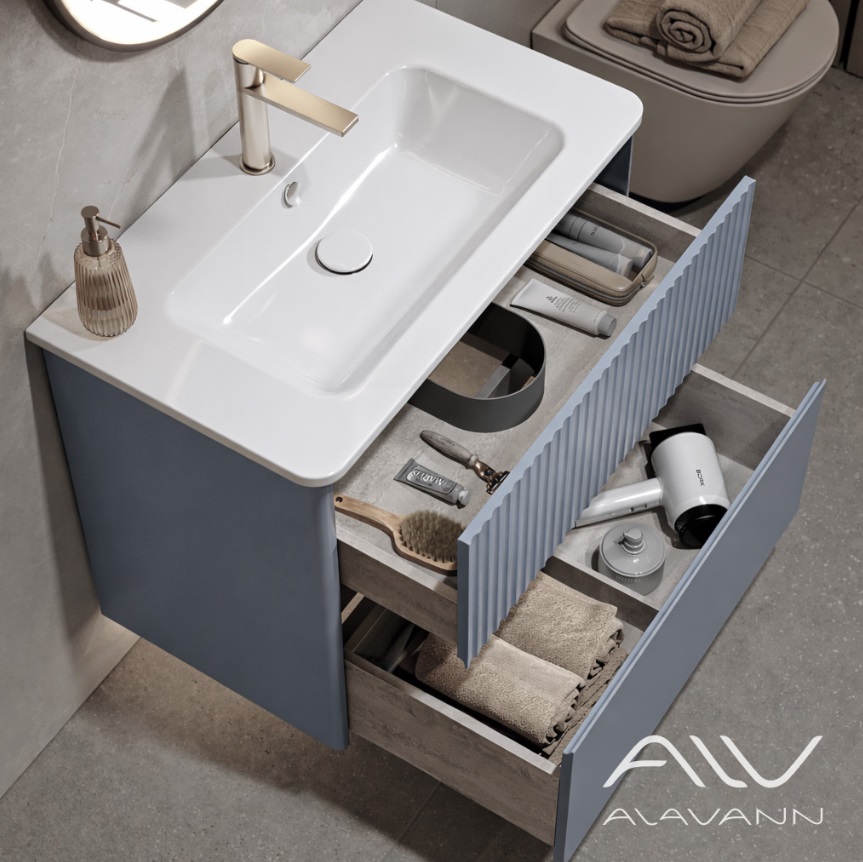 Тумба с раковиной Alavann Wave 80 голубой деним |