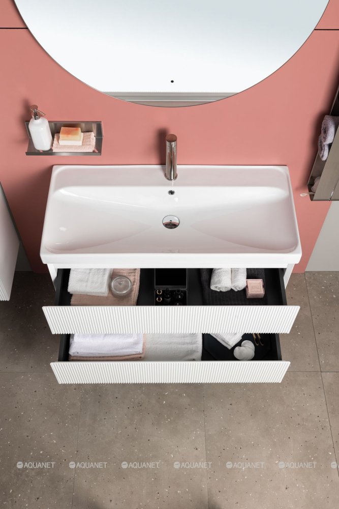Каждая деталь в тумбе Aquanet Альтера 70 белый матовый продумана до мелочей. Пластиковая вставка под сифон с съемным контейнером упрощает уход за сантехникой, а место для подводки коммуникаций гарантирует аккуратный и безопасный монтаж. Высококачественные навесы и доводчики обеспечивают плавное закрывание, придавая мебели дополнительный комфорт в использовании.