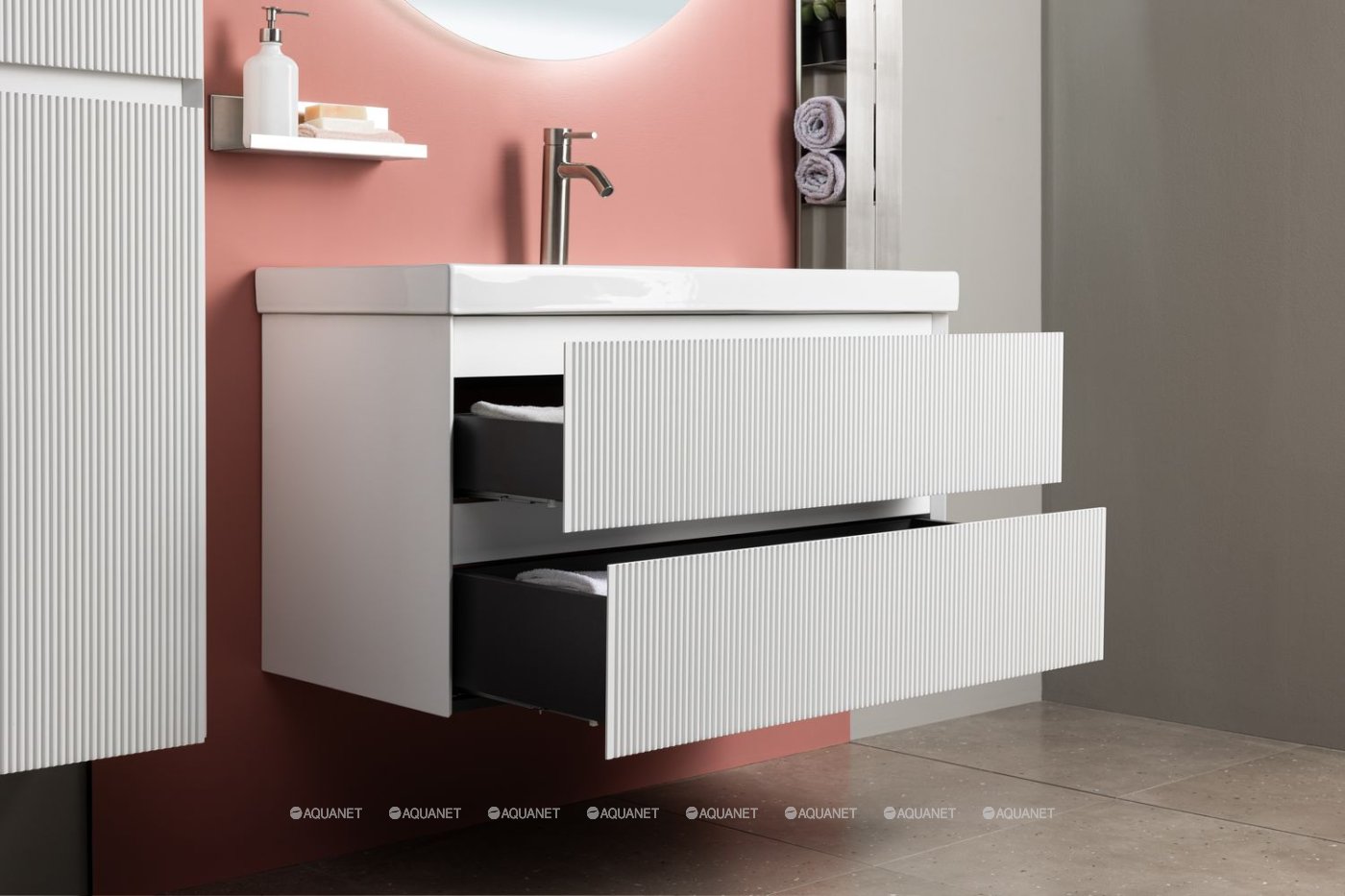 Каждая деталь в тумбе Aquanet Альтера 80 белый матовый продумана до мелочей. Пластиковая вставка под сифон с съемным контейнером упрощает уход за сантехникой, а место для подводки коммуникаций гарантирует аккуратный и безопасный монтаж. Высококачественные навесы и доводчики обеспечивают плавное закрывание, придавая мебели дополнительный комфорт в использовании.