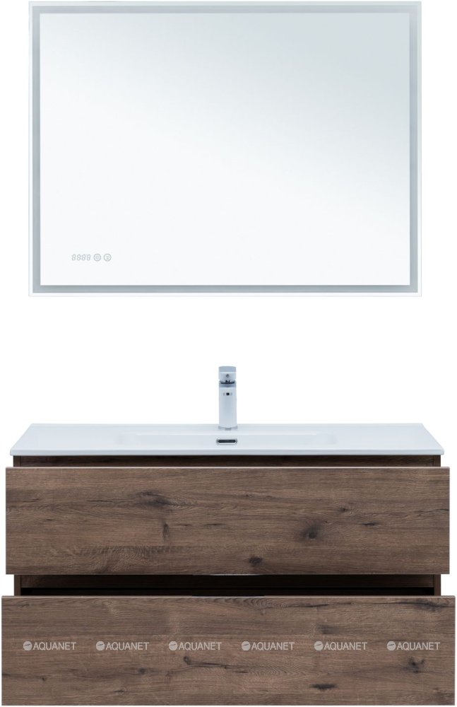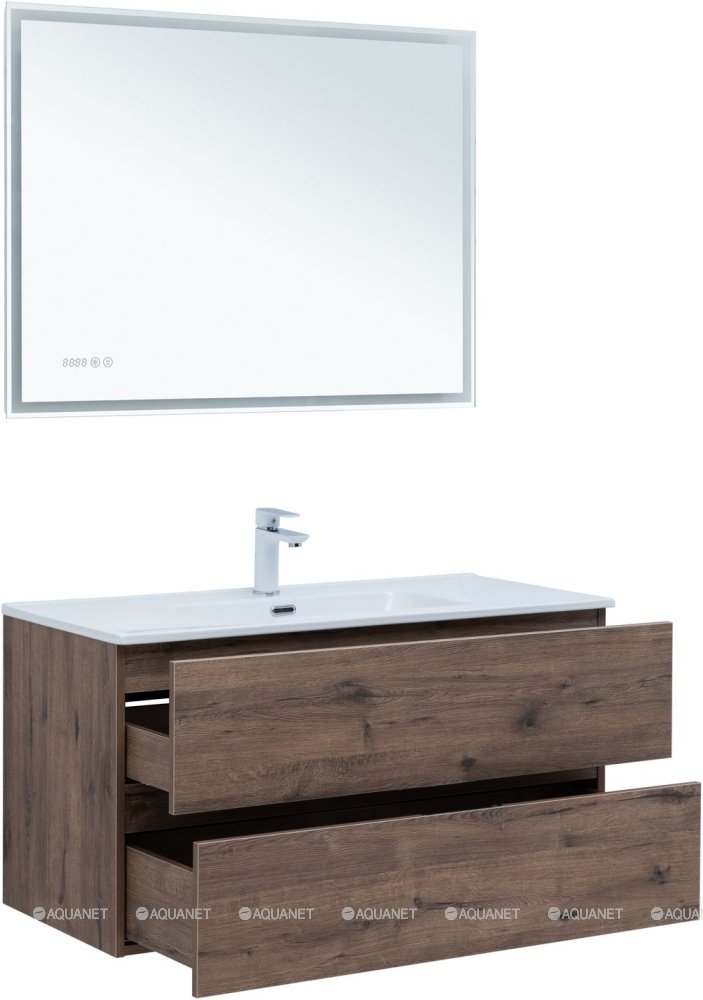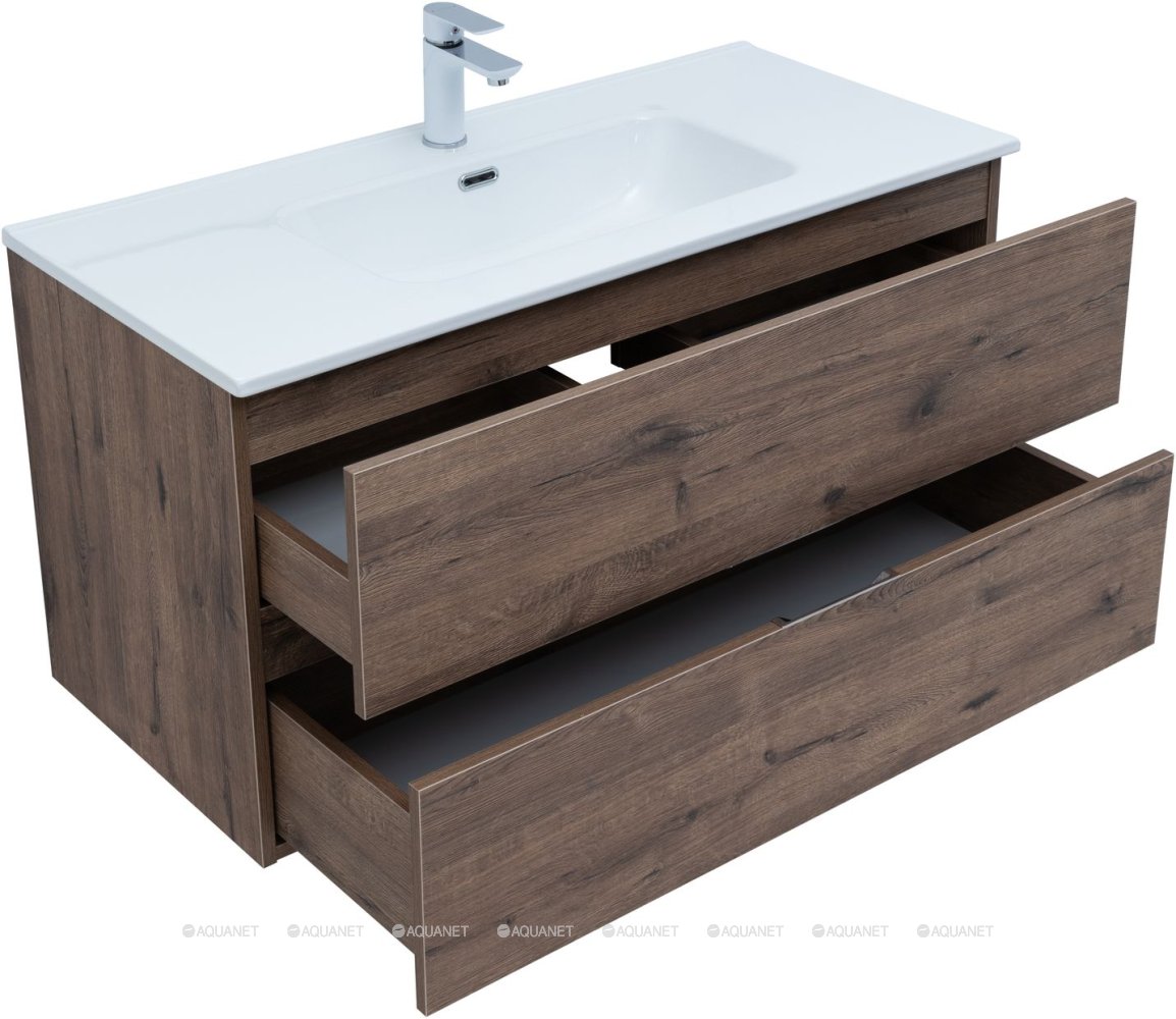Тумба с раковиной Aquanet Алвита New 100 2 ящика, дуб веллингтон табак |
