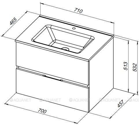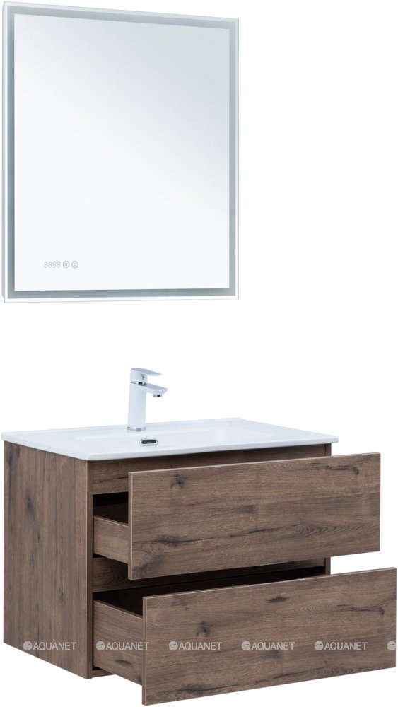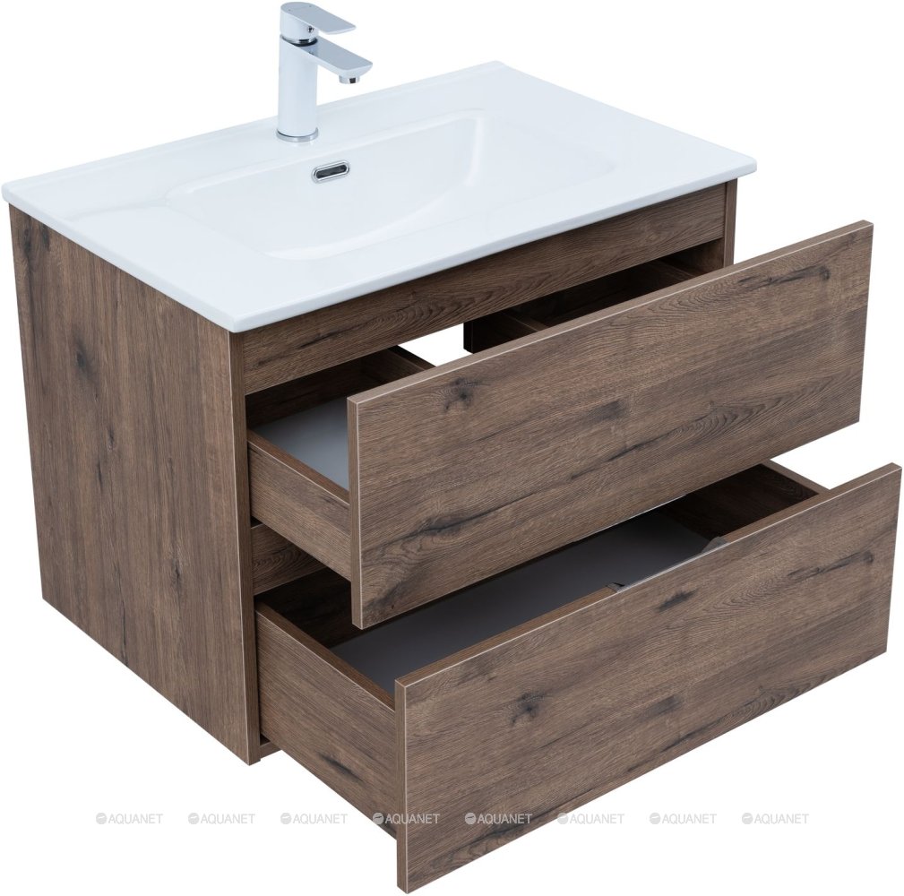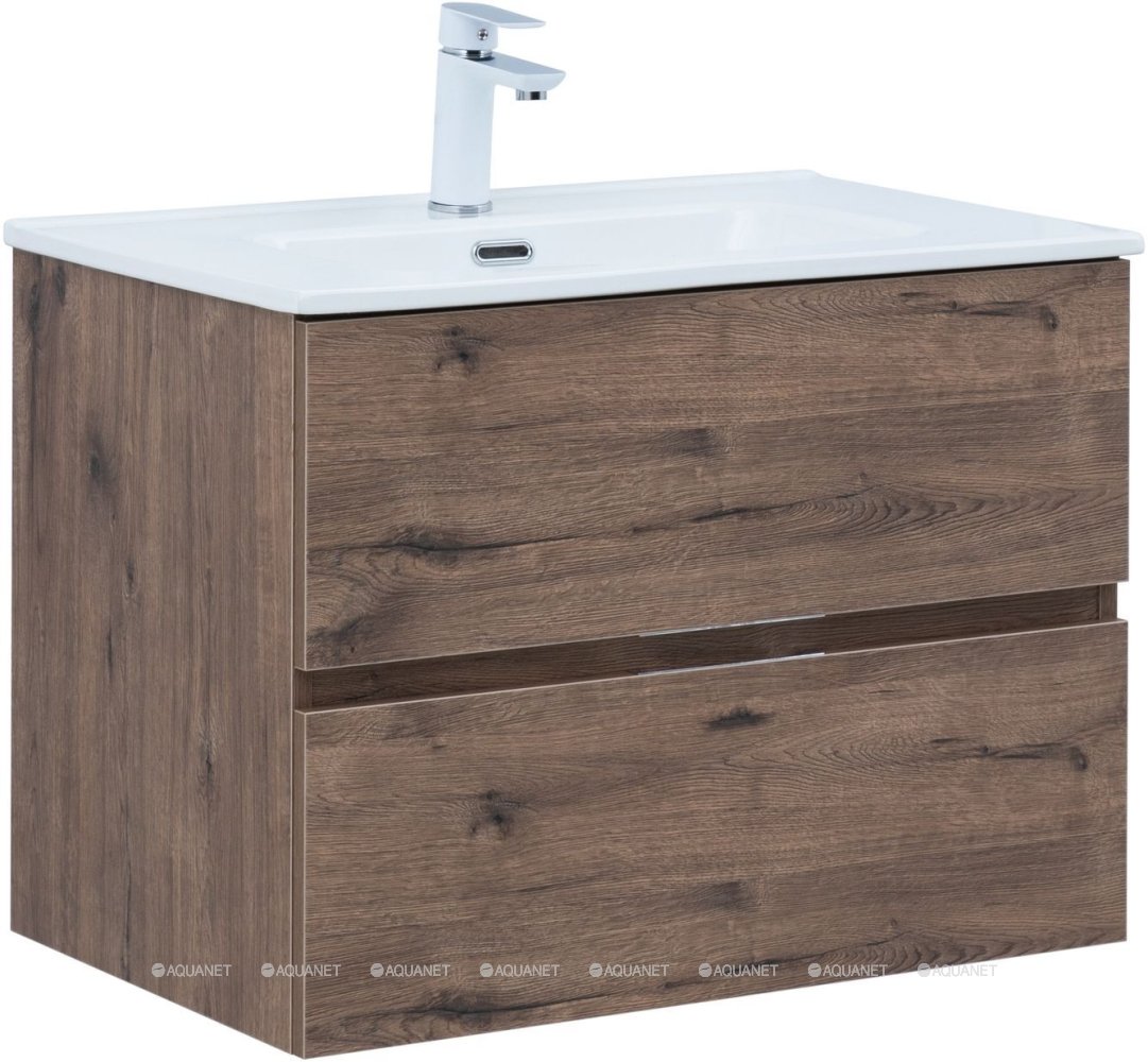 Тумба с раковиной Aquanet Алвита New 70 2 ящика, дуб веллингтон табак |