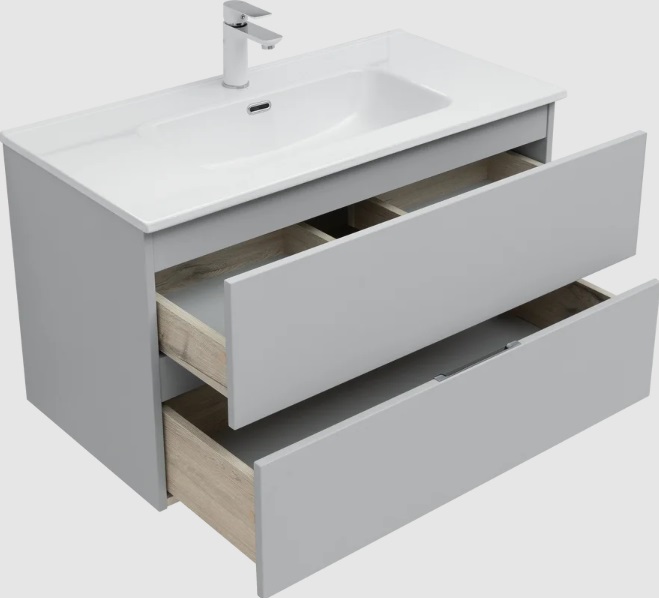 Тумба с раковиной Aquanet Алвита New 90 2 ящика, серый