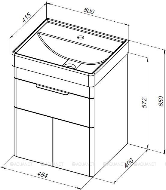 Тумба с раковиной Aquanet Ирис new 50 2 ящика |