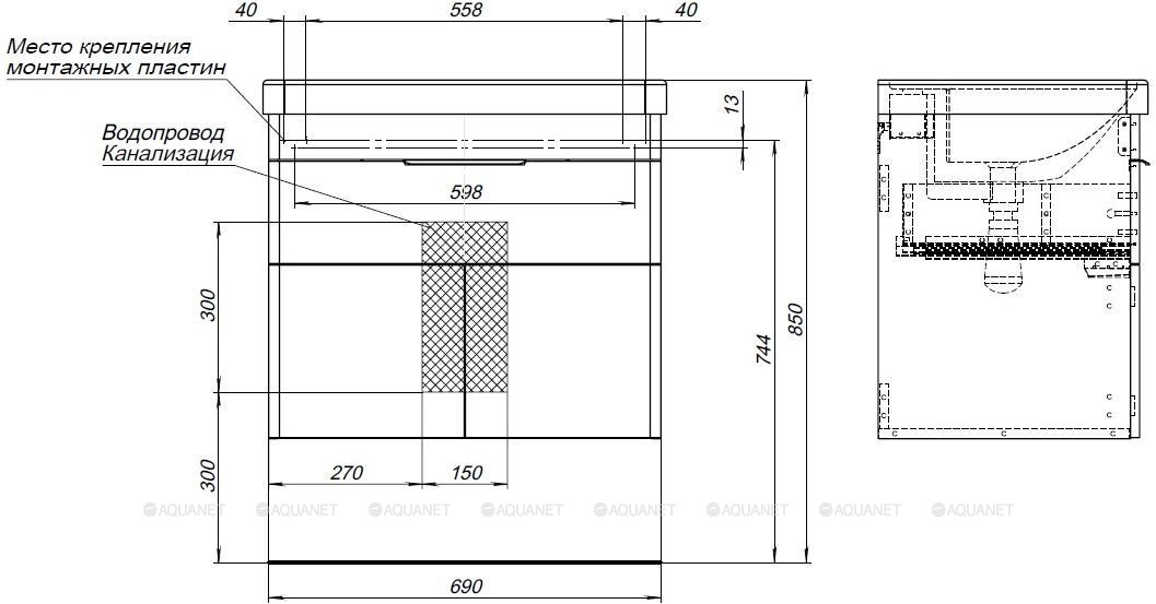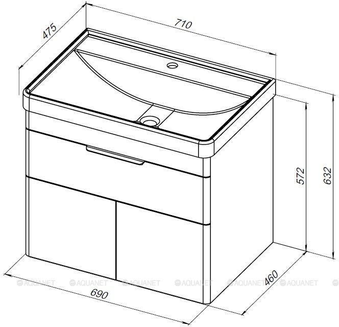 Тумба с раковиной Aquanet Ирис new 70 1 ящик, 2 дверцы |