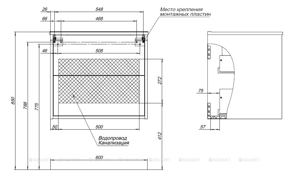 Тумба с раковиной Aquanet Lino Flat 60 белый глянец |