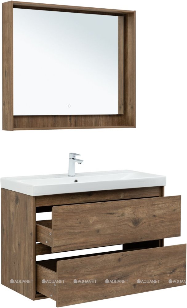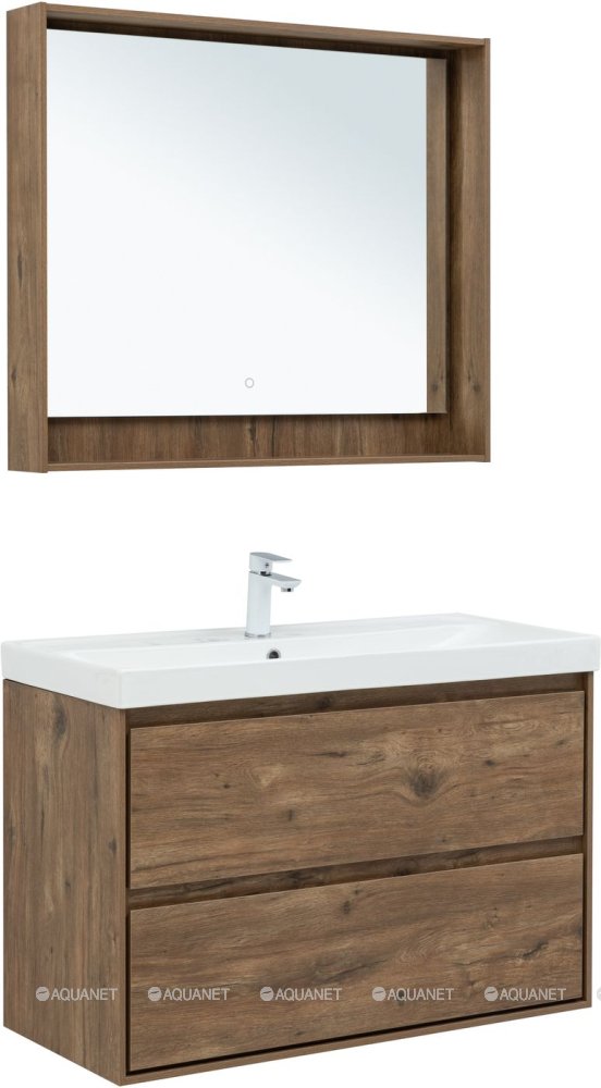 Тумба с раковиной Aquanet Милан 100 Flash 2 ящика дуб рустикальный |