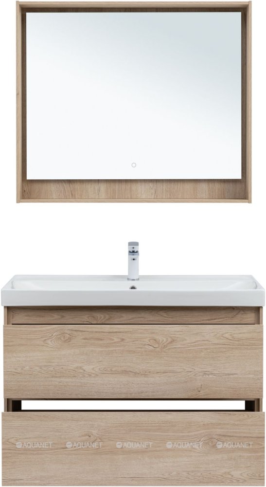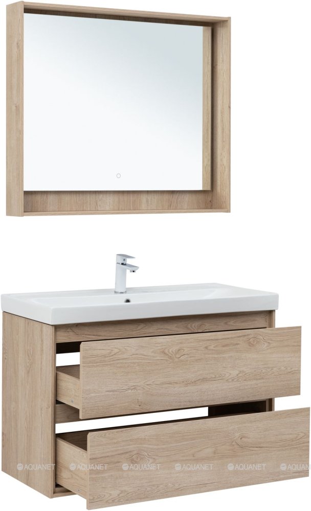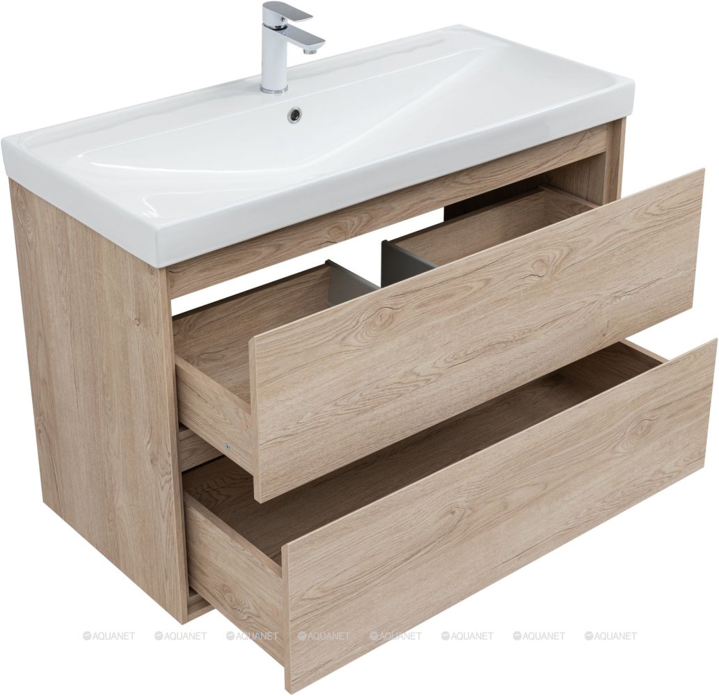 Тумба с раковиной Aquanet Милан 100 Flash 2 ящика дуб светлый |