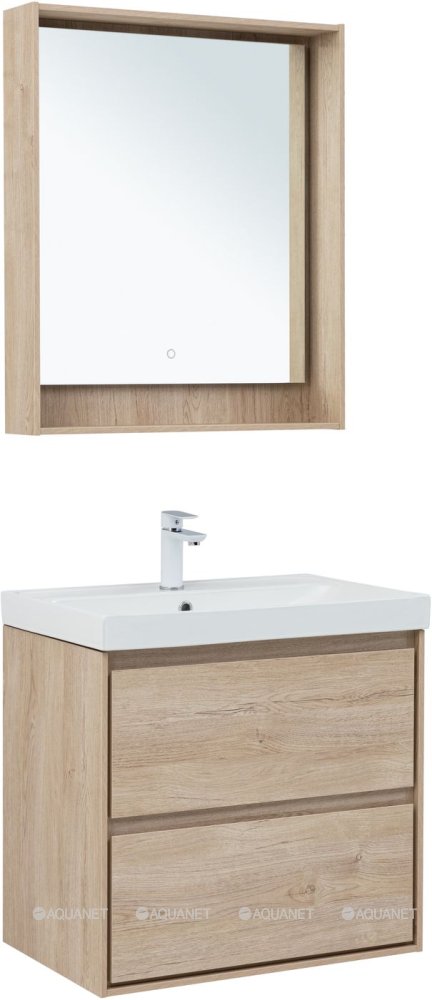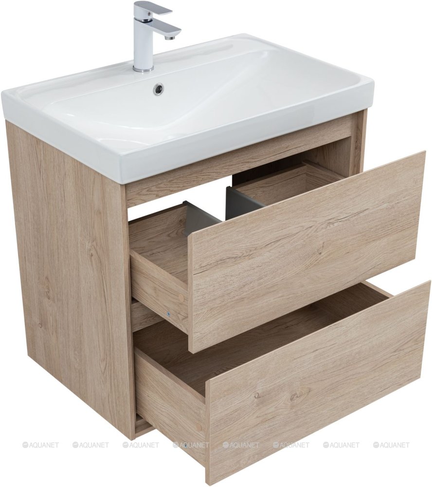 Тумба с раковиной Aquanet Милан 70 Flash 2 ящика дуб светлый
