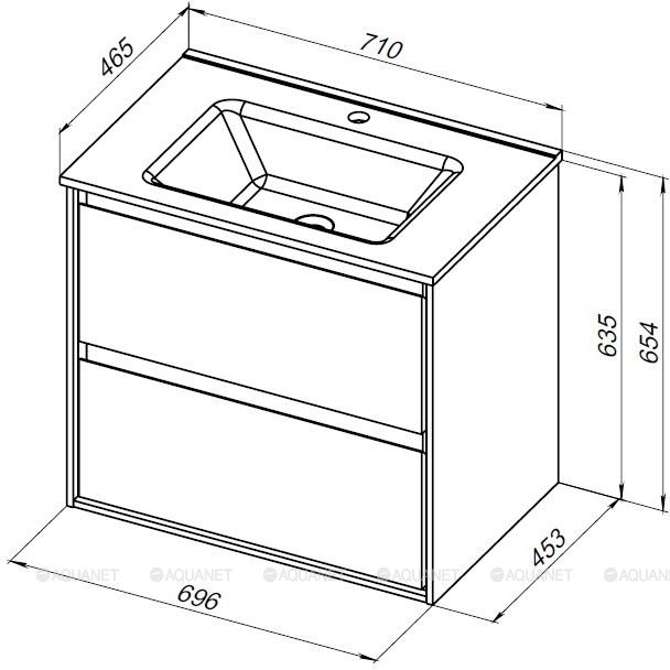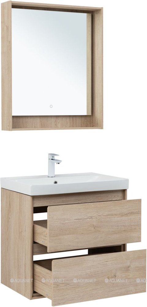 Тумба с раковиной Aquanet Милан 70 Flash 2 ящика дуб светлый |