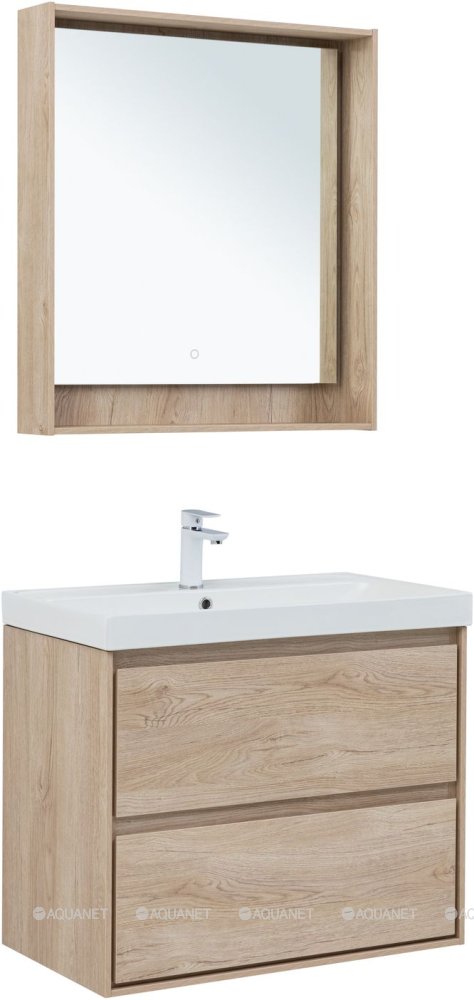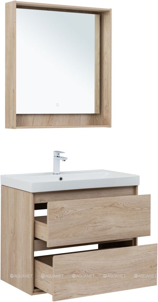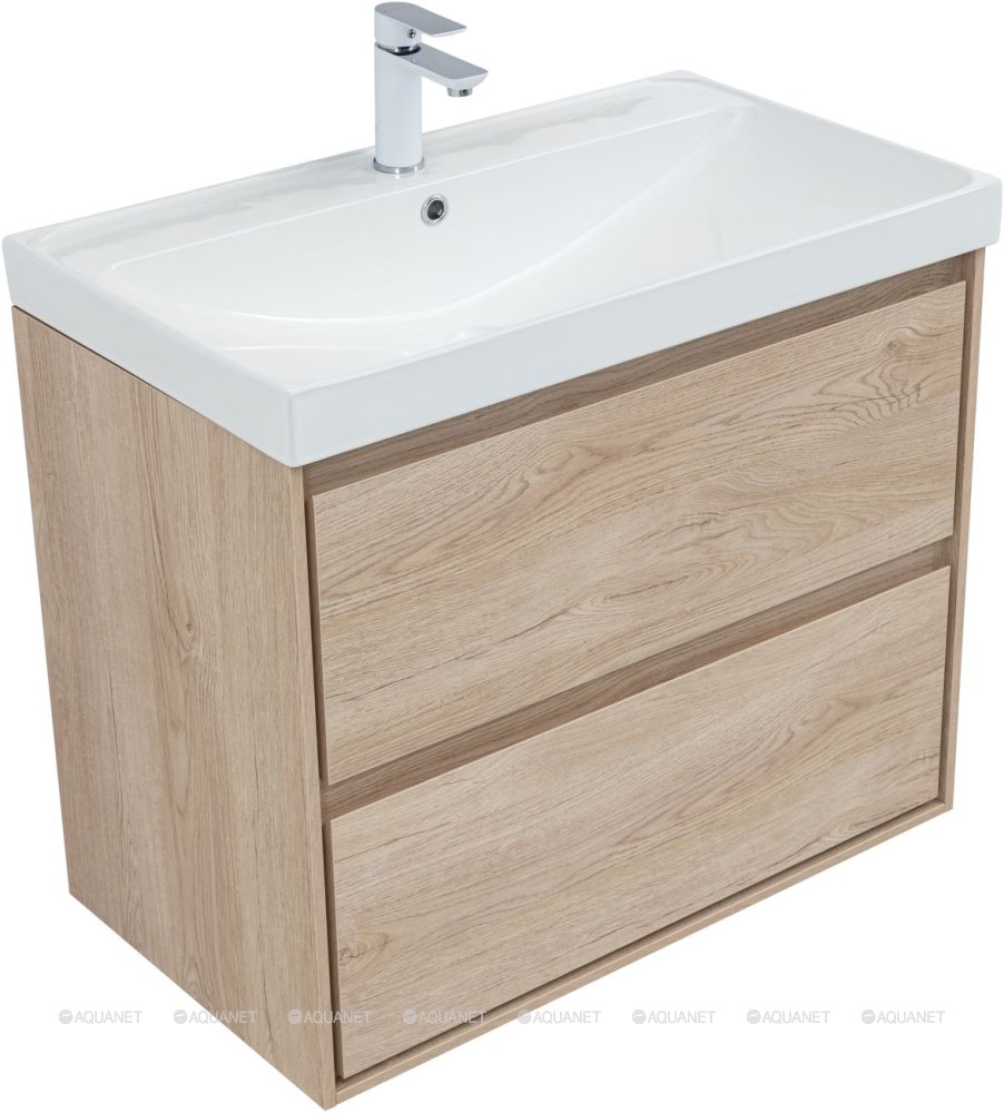 Тумба с раковиной Aquanet Милан 80 Flash 2 ящика дуб светлый |