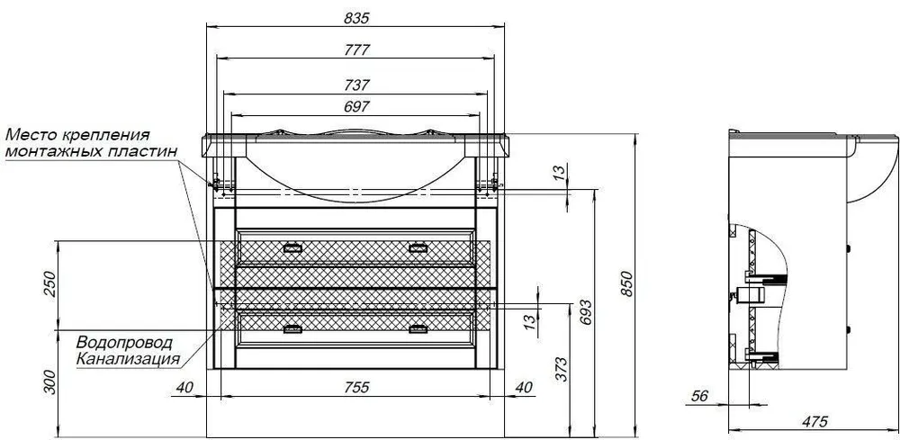 Тумба с раковиной Aquanet Монте 85 белый матовый |