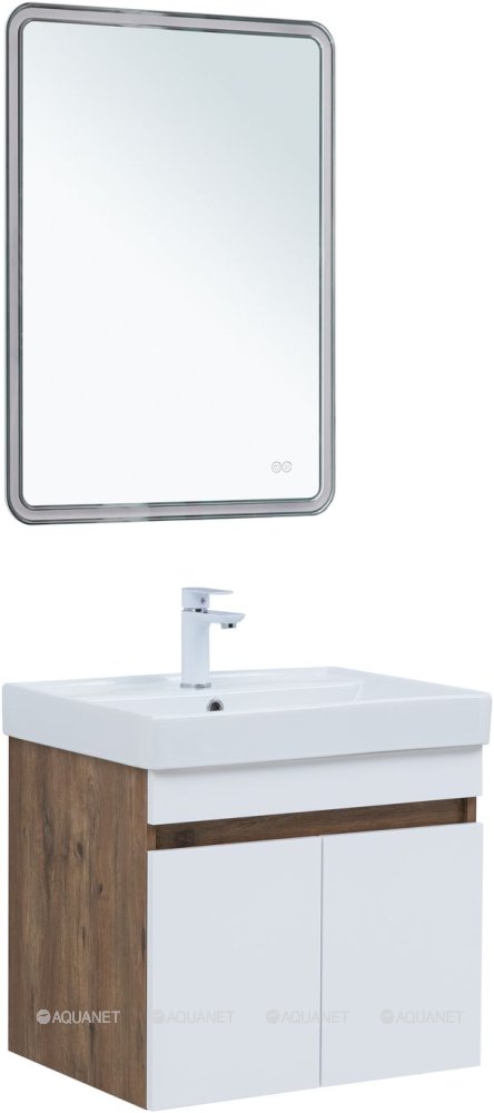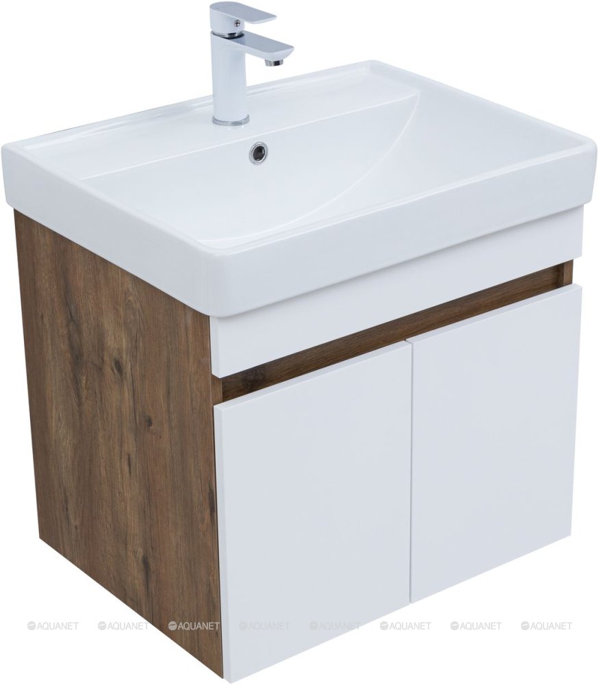 Тумба с раковиной Aquanet Оптима 60 белый, дуб рустикальный