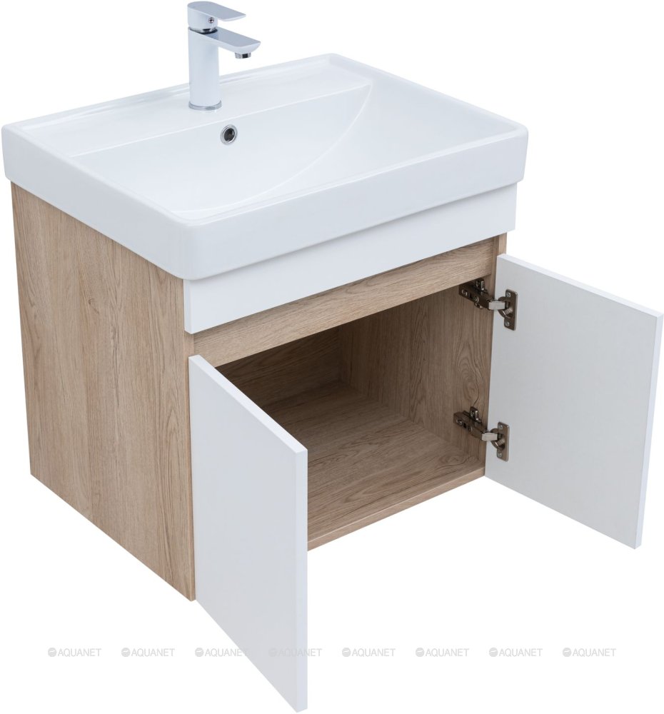 Тумба с раковиной Aquanet Оптима 60 белый, дуб светлый