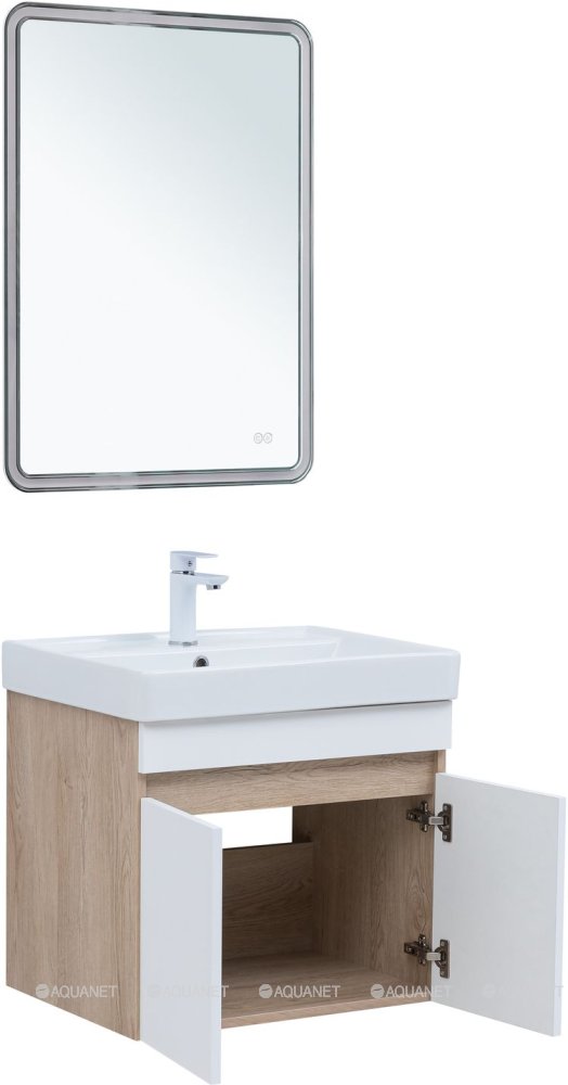 Тумба с раковиной Aquanet Оптима 60 белый, дуб светлый |