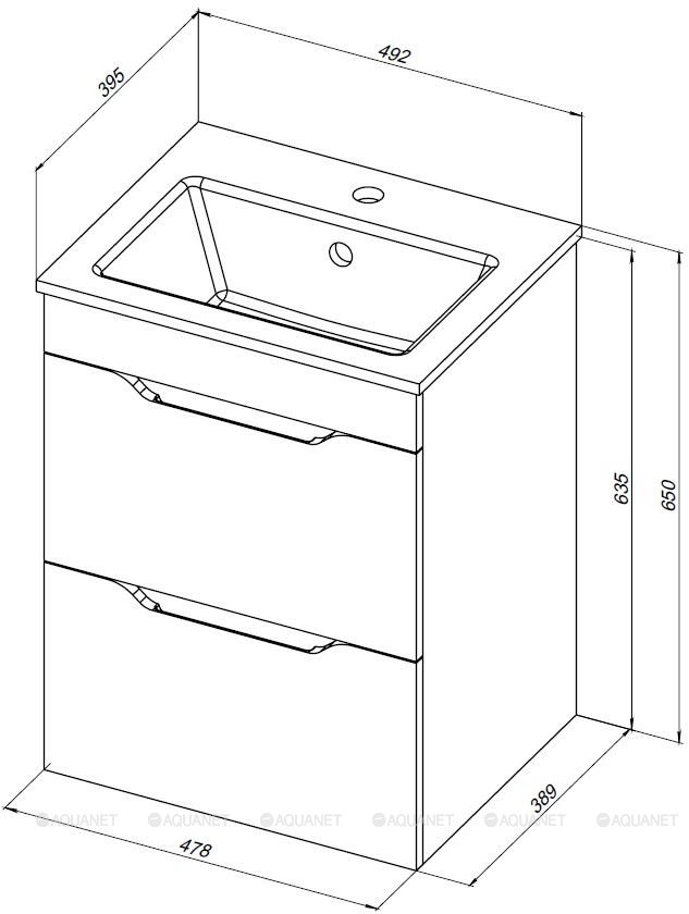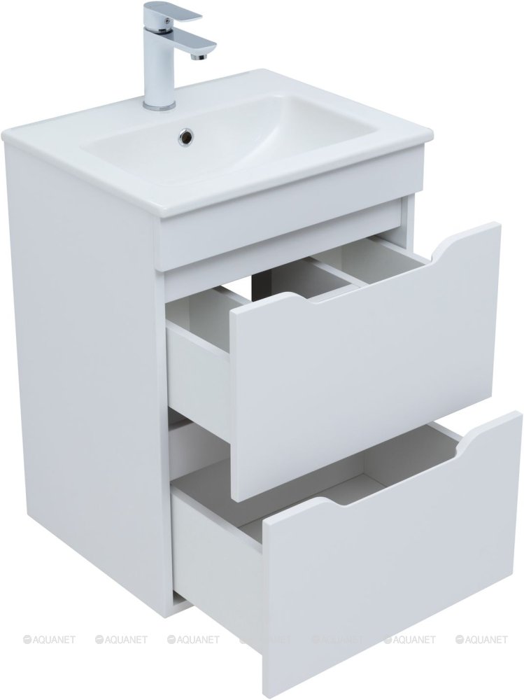 Тумба с раковиной Aquanet Практика 50 белый матовый 2 ящика |
