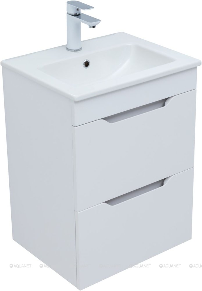 Тумба с раковиной Aquanet Практика 50 белый матовый 2 ящика