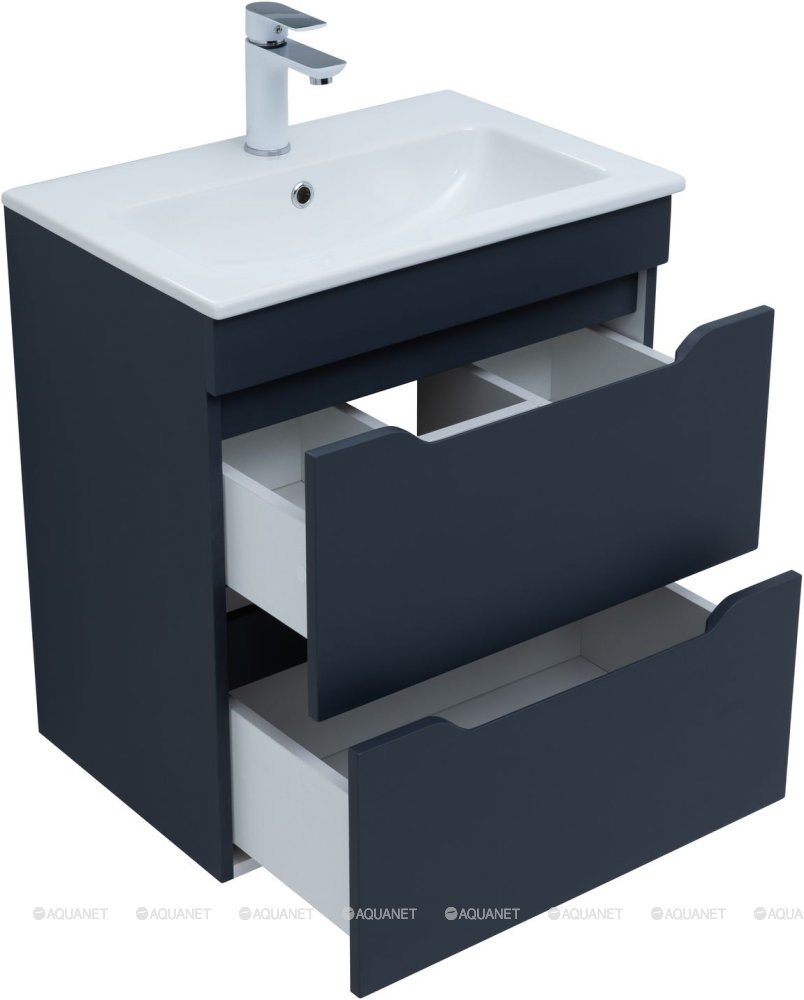 Тумба с раковиной Aquanet Практика 60 маренго 2 ящика
