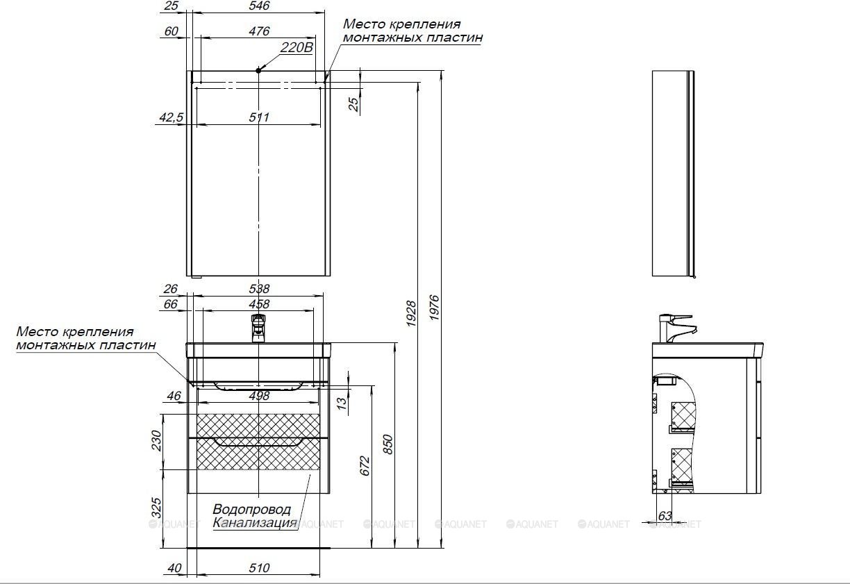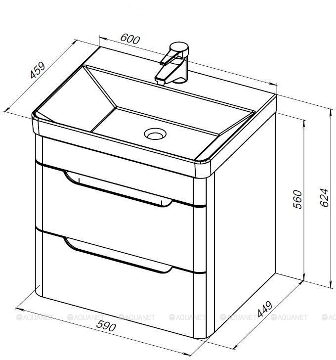 Тумба с раковиной Aquanet София 60 2 ящика