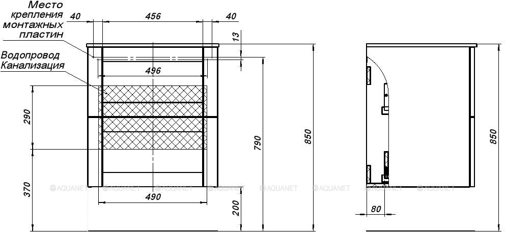Тумба с раковиной Aquanet Терра 60 маренго