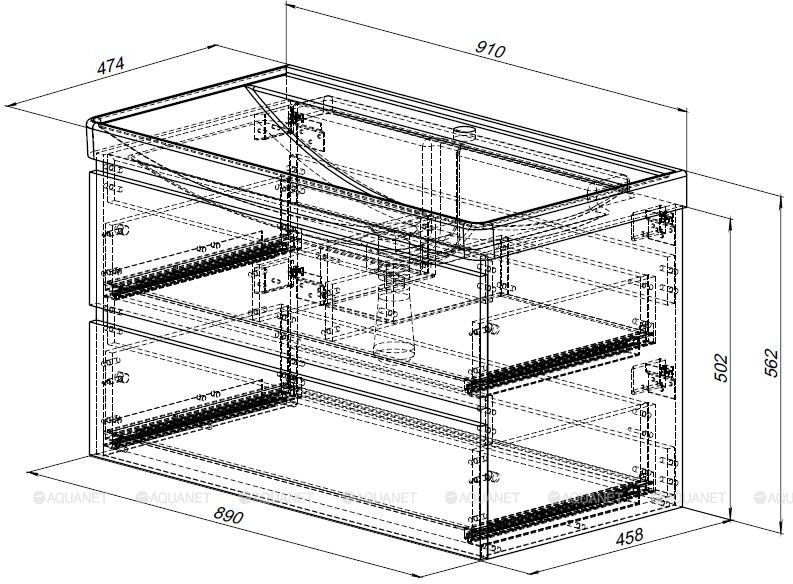 Тумба с раковиной Aquanet Вега 2.0 90 2 ящика мисти грин |