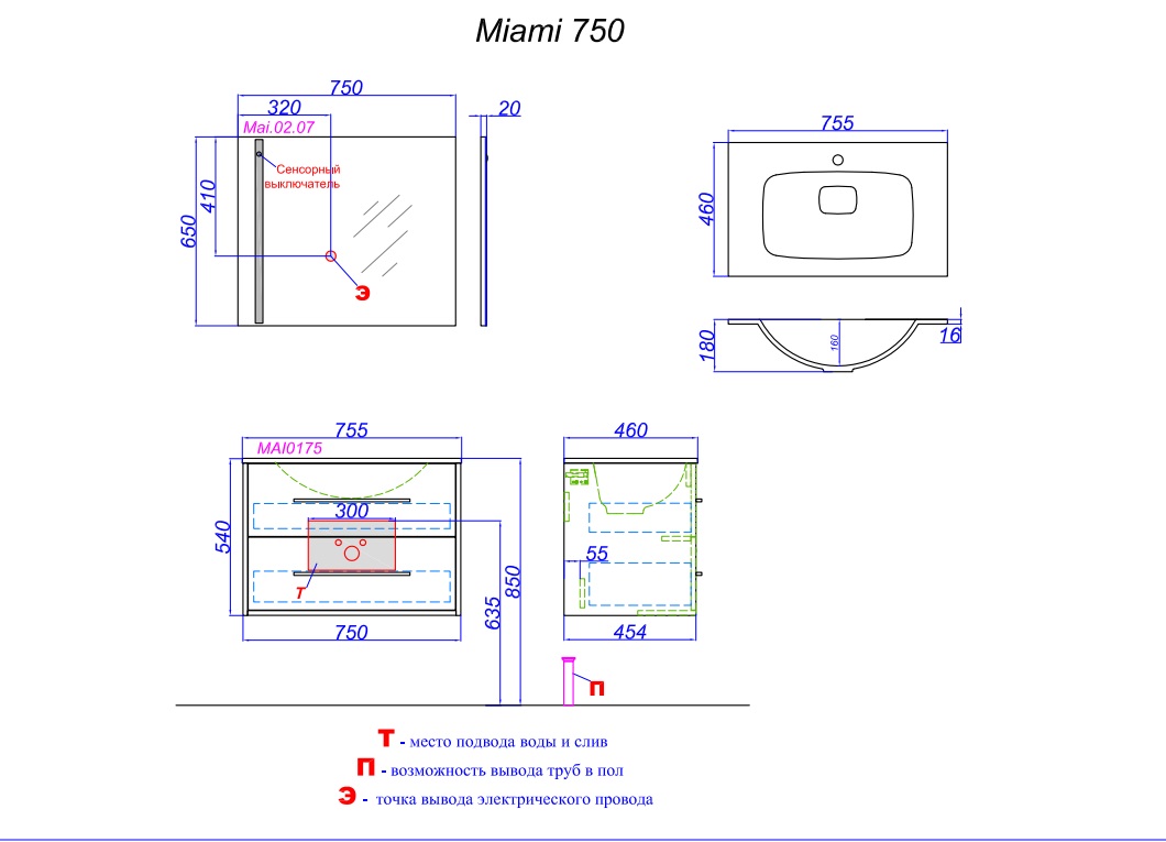 Тумба с раковиной Aqwella 5 stars Miami 75 |