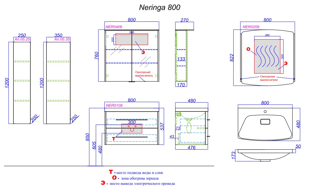 Тумба с раковиной Aqwella 5 stars Neringa 80 белый |