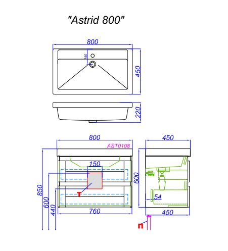 Тумба с раковиной Aqwella Astrid 80 дуб давос |