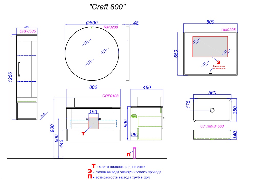Тумба с раковиной Aqwella Craft 80 дуб балтийский |